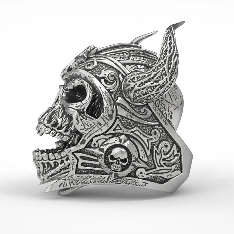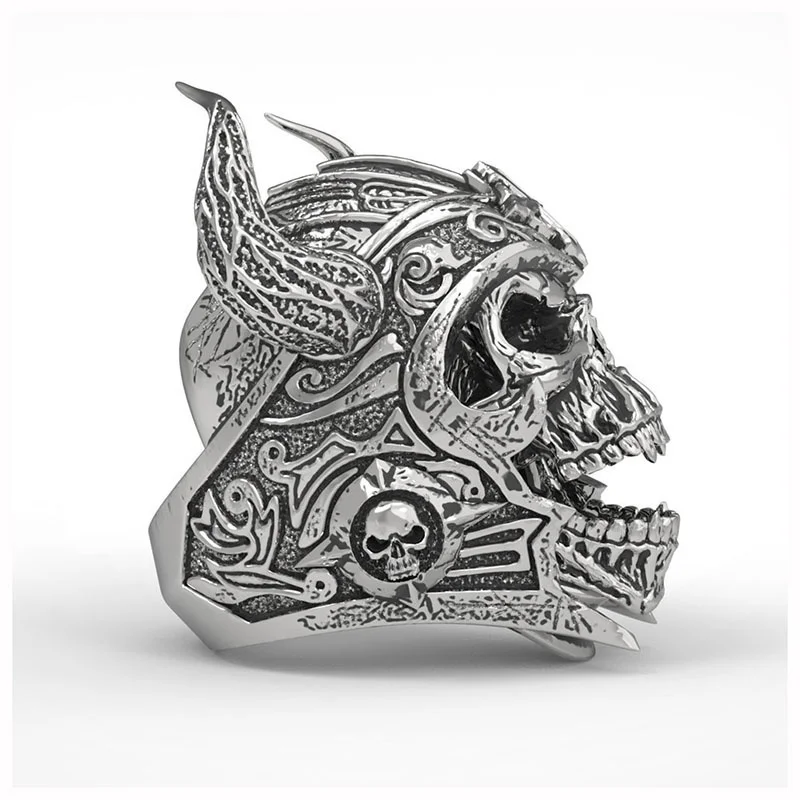Bull Head Mask Warrior Skull Shape Ring Men's Ring Retro Metal Horror Skull Horn Ring Accessories Party Jewelry