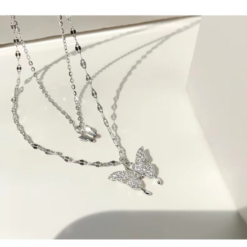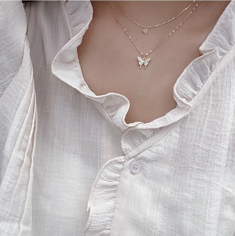 Butterfly Double Necklace Ladies Simple Design Niche Temperament Necklace Popular Alloy Version Clavicle Necklace