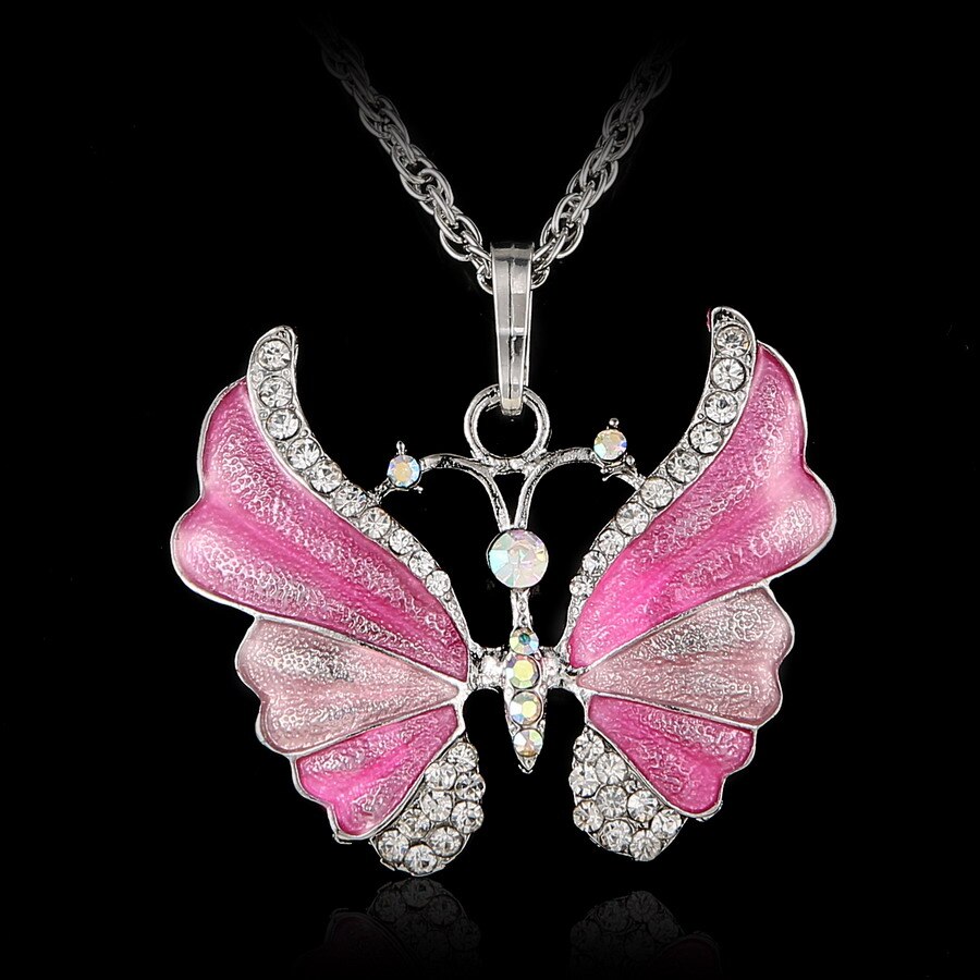 Butterfly Necklace Butterfly jewelry Autumn accessories popular hip enamel crystal butterfly pendant long necklace chain women