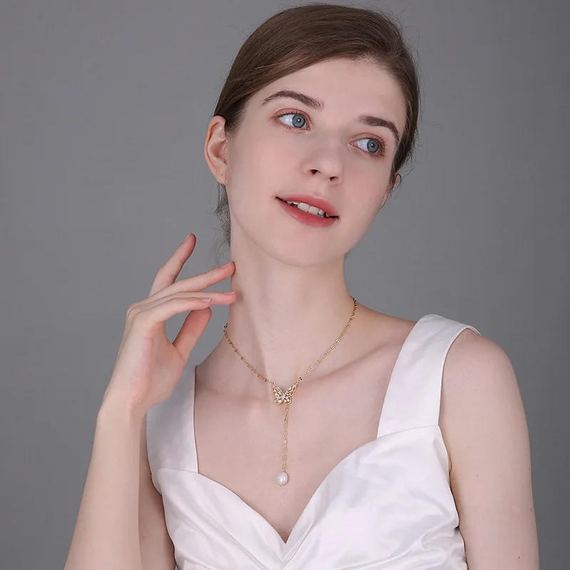 Butterfly Pendant Pearl Tassel Clavicle Chain Sweet Lovely Temperament Style Fine Workmanship Shining Like A Diamond