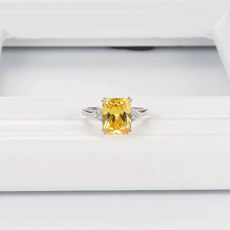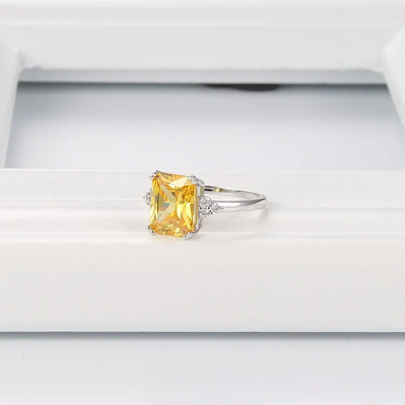 Solid 925 Sterling Silver Engagement Citrine Rings For Women Fine Jewelry