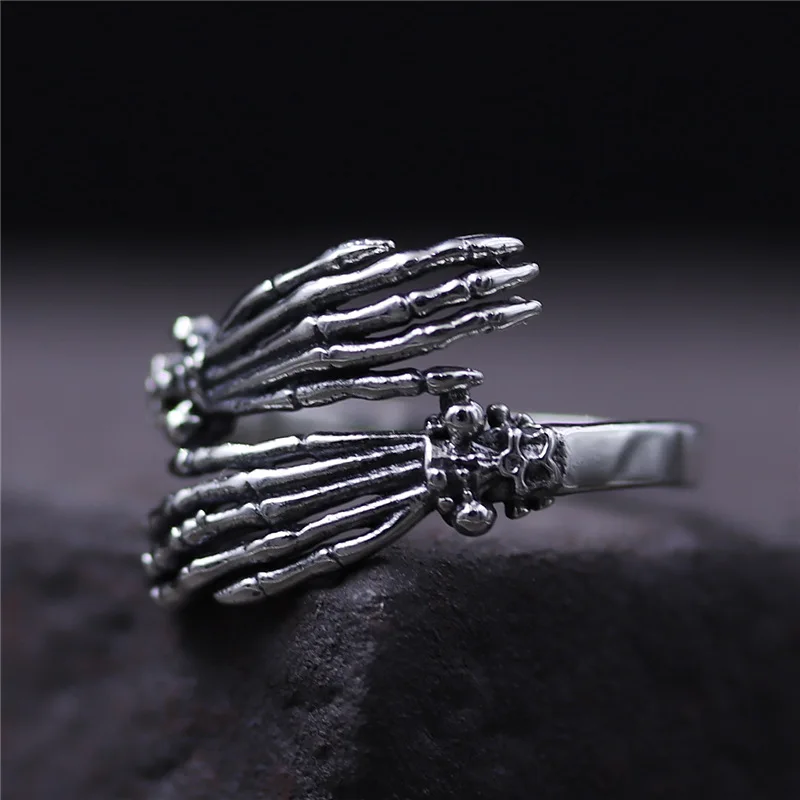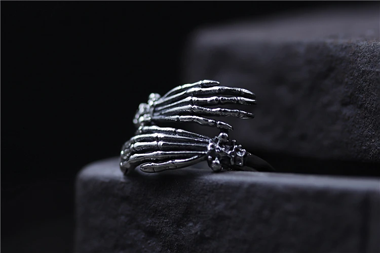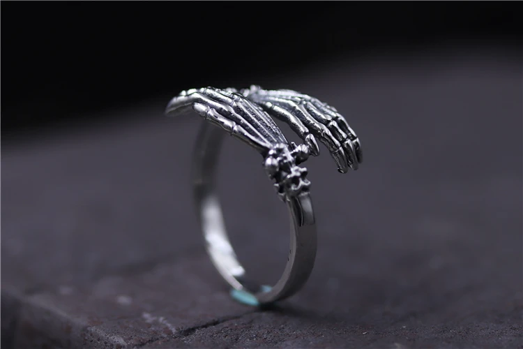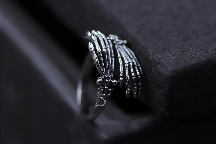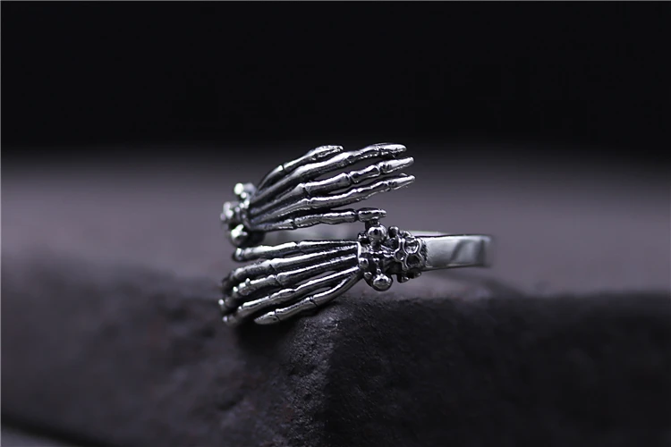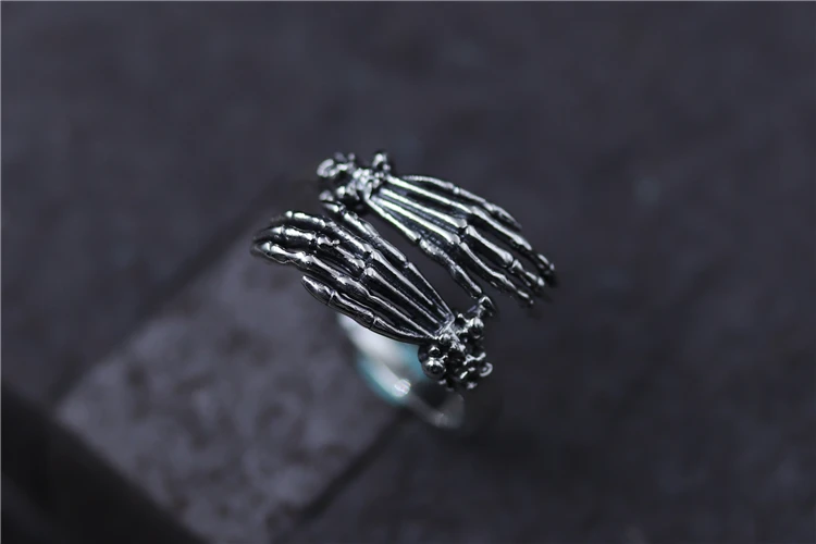 C&R Pure 925 Sterling Silver Rings for Women men bone finger shape opening ring Neo-Gothic Fine Jewelry