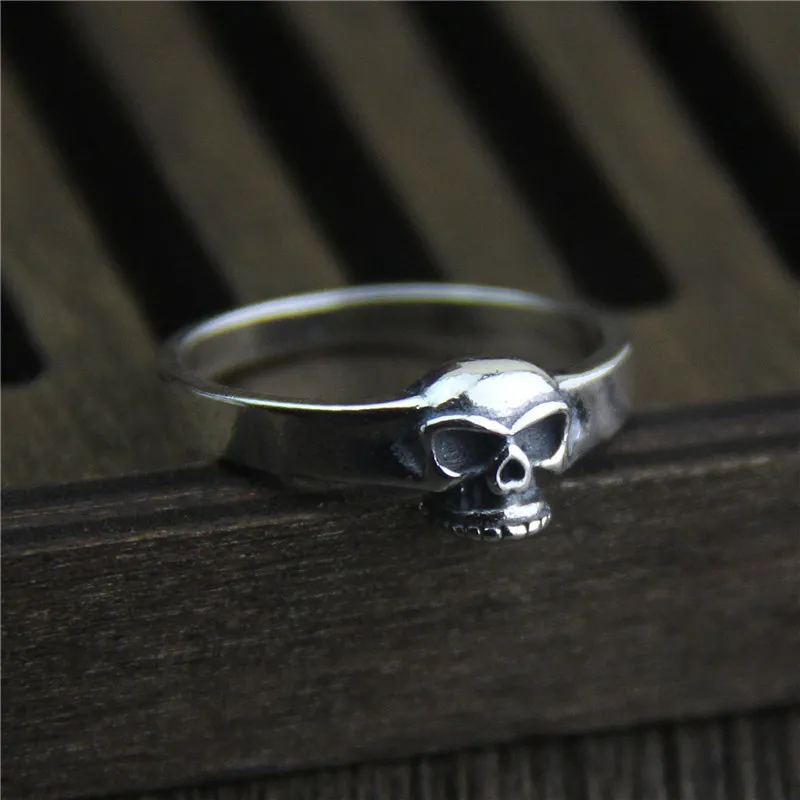 C&R Pure 925 Sterling Silver Rings for Women Vintage Thai Silver Personality Skull Ring punk style Fine Jewelry Size 5-9