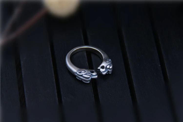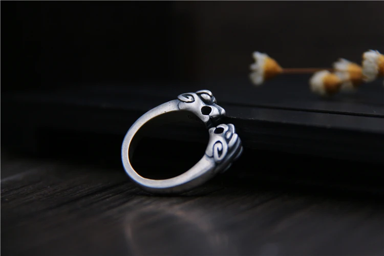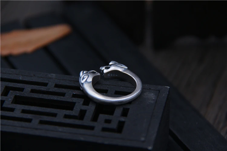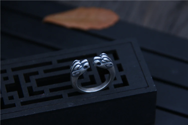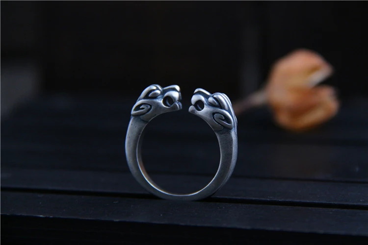 C&R Pure S999 Sterling Silver Rings for Women Vintage personalized handmade silver double leopard head beast ring Fine Jewelry