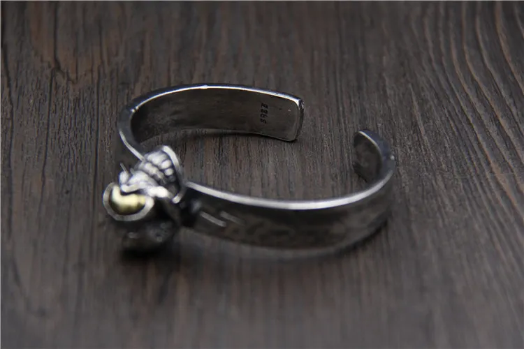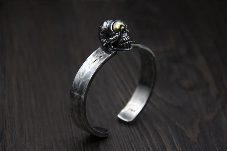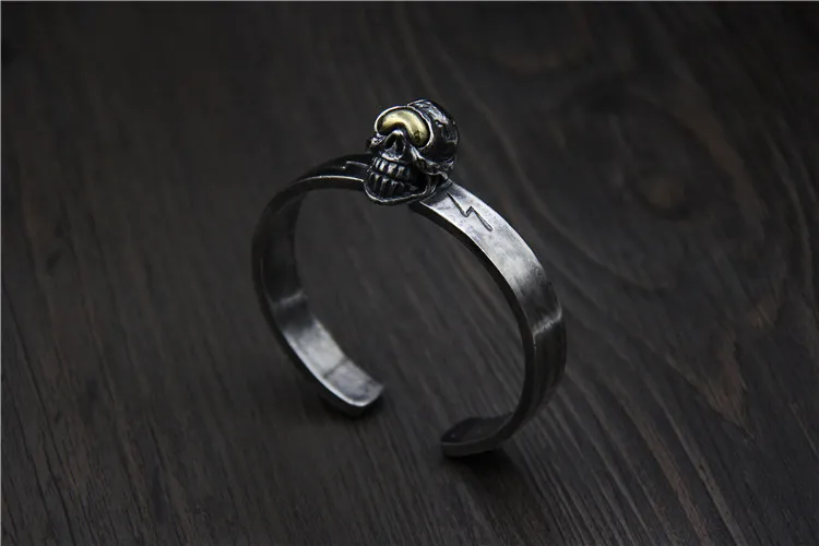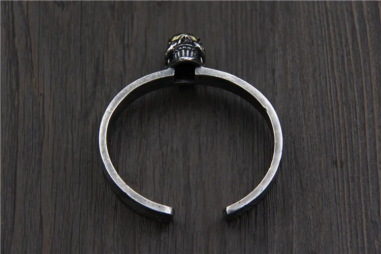 C&R Real 925 Sterling Silver bracelet Retro male personality unique Skull opening Thai silver Bangle Handmade Fine Jewelry
