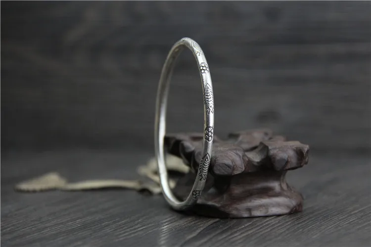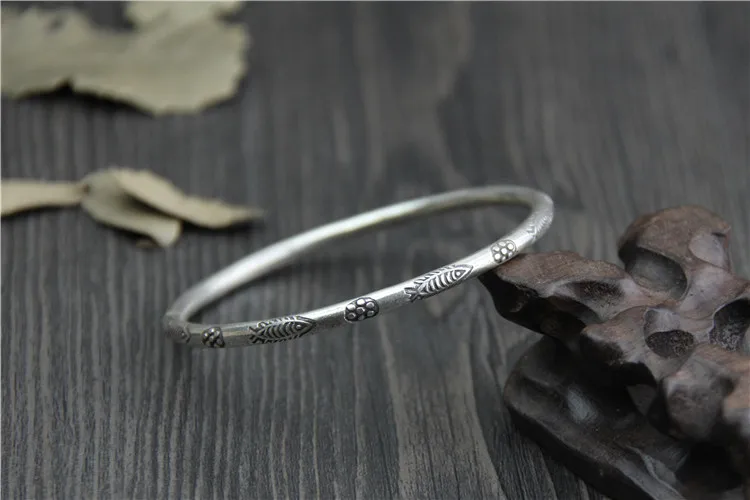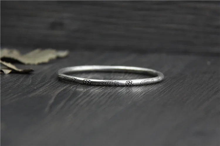 C&R Real 999 Sterling Silver bangle bracelet for women hand-carved fish Thai Silver bangles vintage Fine Jewelry