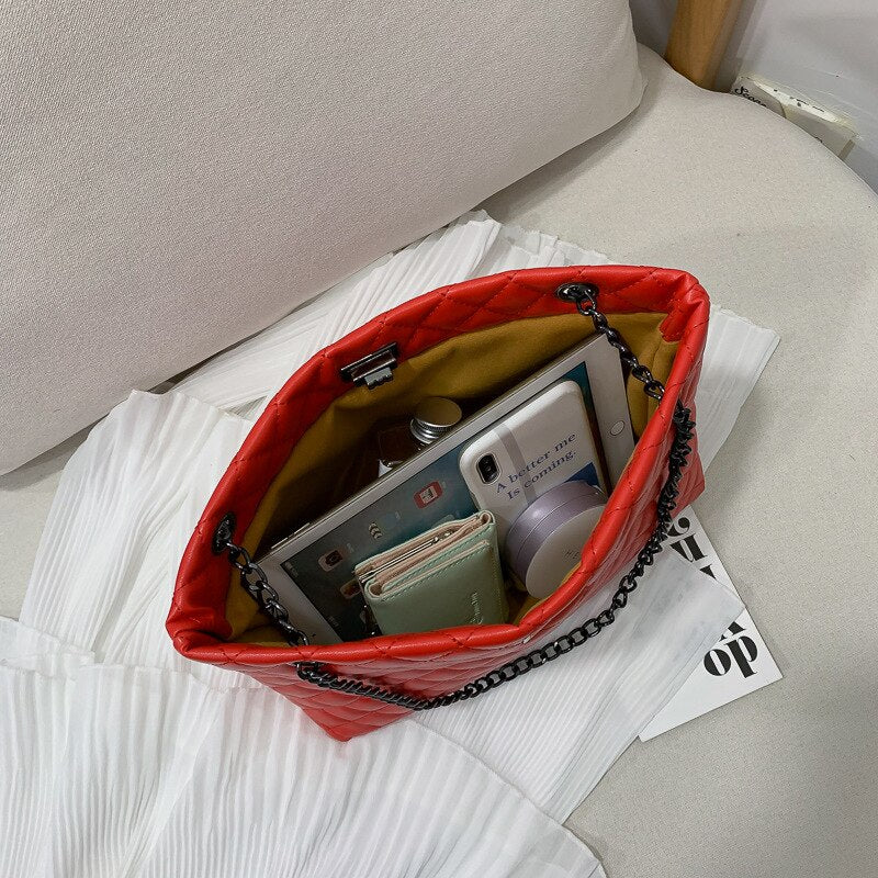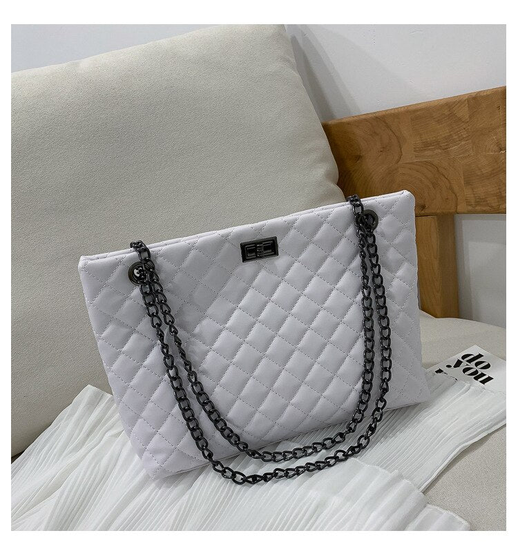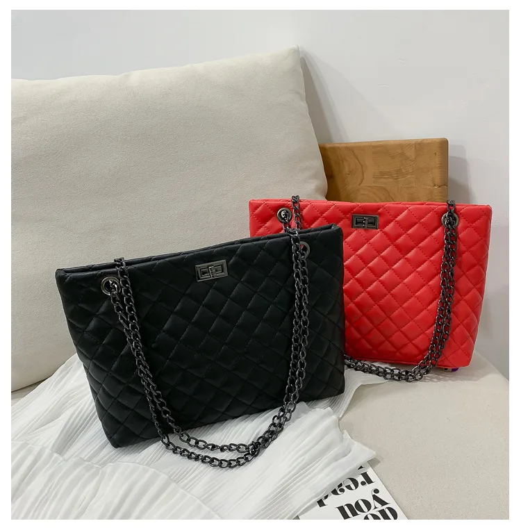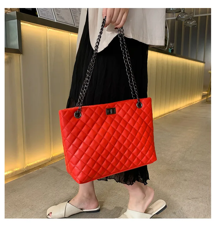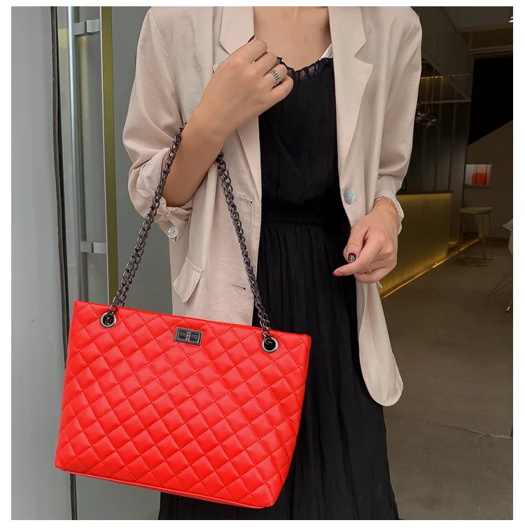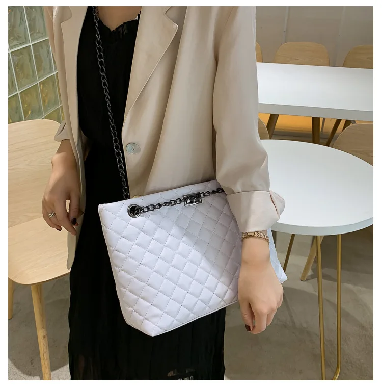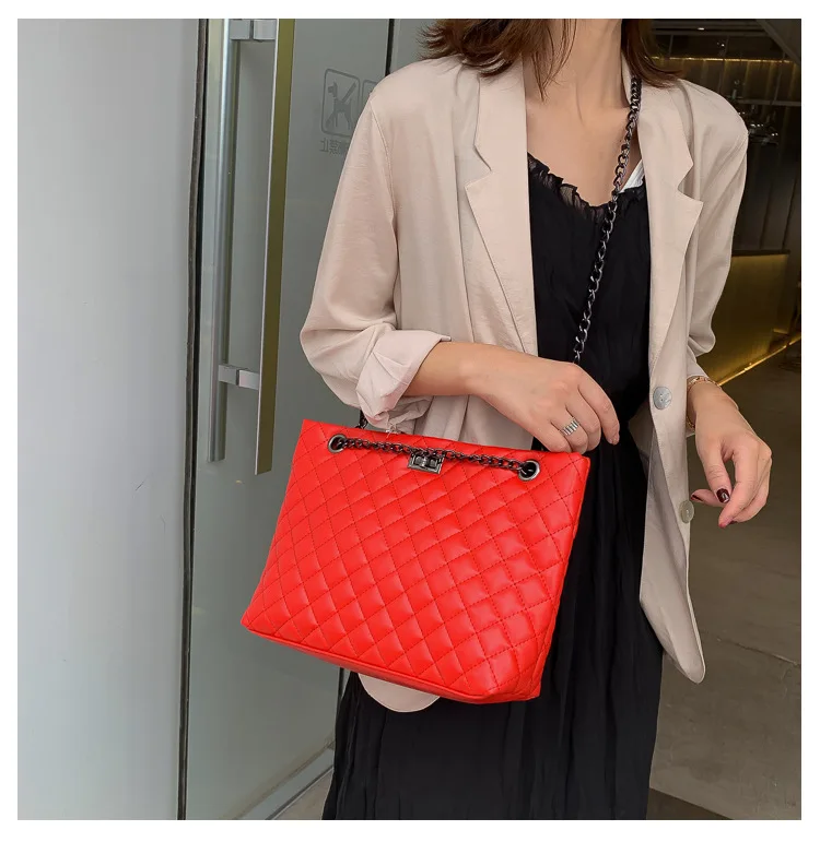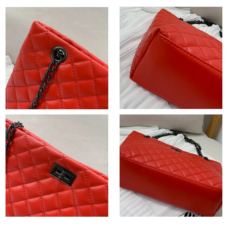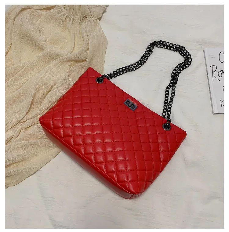 CAIOAIFEI diamond lattice women chain shoulder bag soft PU leather medium handbag hotladies crossbody bag shopping