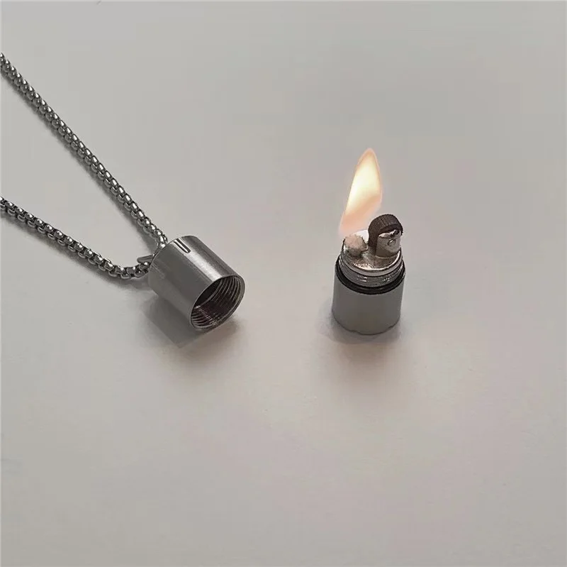 Can act as a lighter necklace can twist open capsule pendant couples simple versatile titanium steel mini