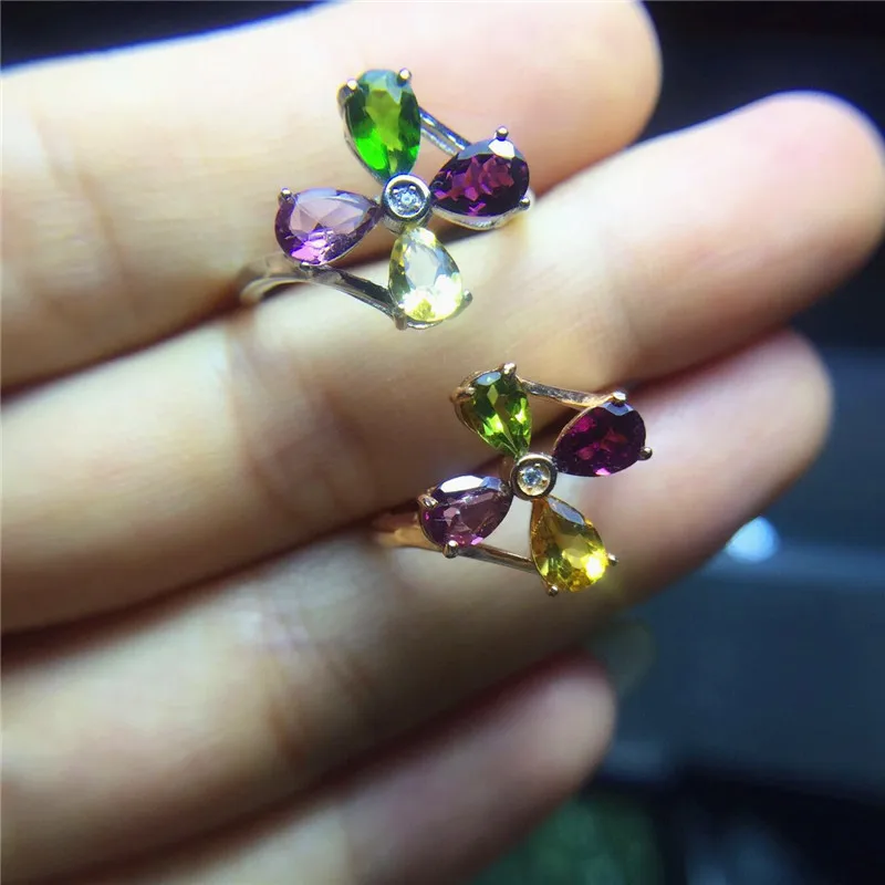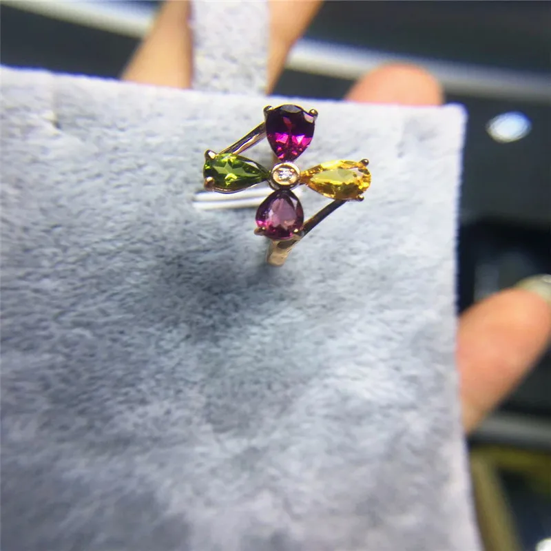 Candy color tourmaline silver ring 4mm round cut natural tourmaline gemstone ring for girl solid 925 silver tourmaline ring