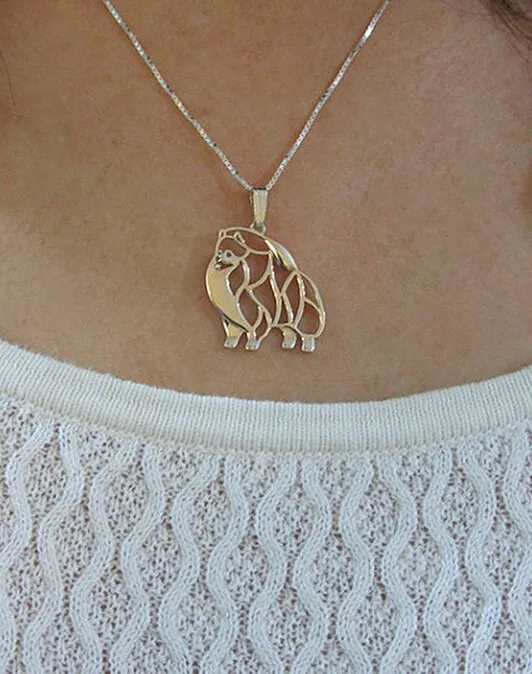 cartoon Boho Chic Alloy pomeranian necklace dog pendant jewelry golden colors plated 12pcs/lot