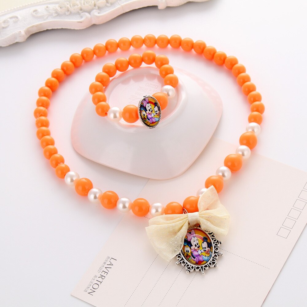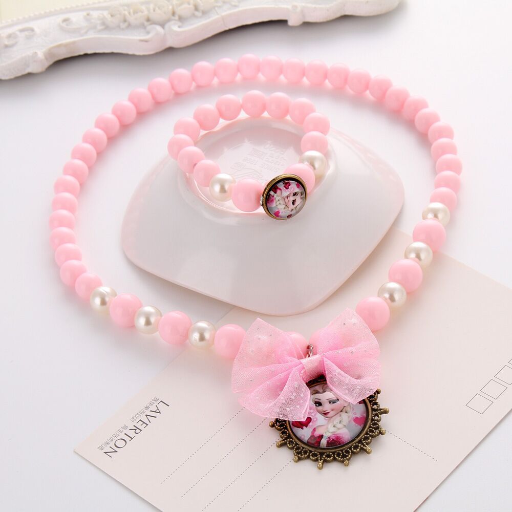 Cartoons Children's Princess Acrylic Pearls Beaded Sweater Necklace Bracelet for Girls Christmas Gifts Kids Jewelry Choker
