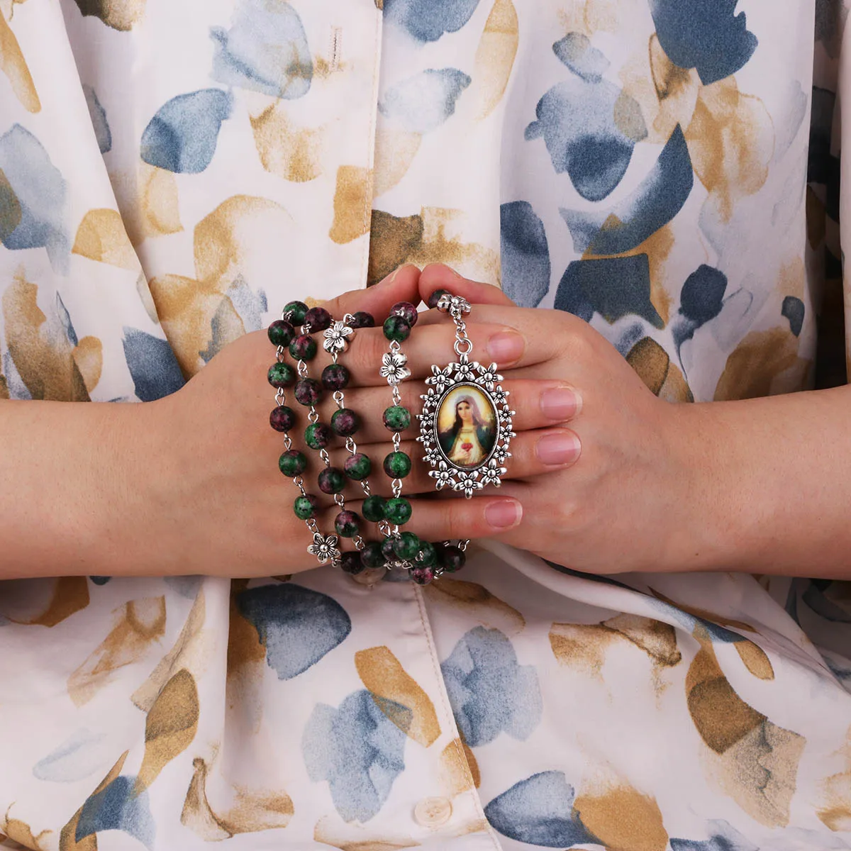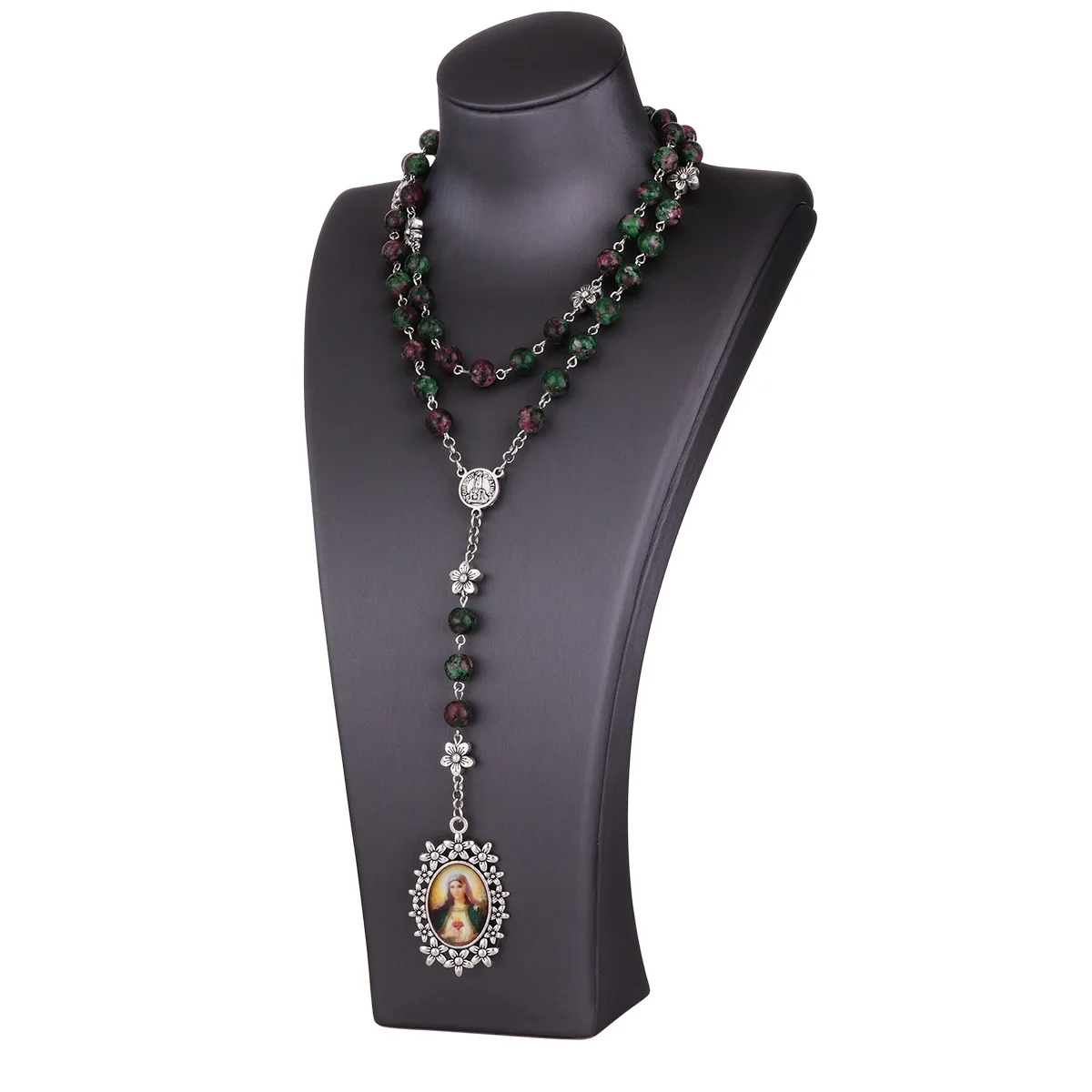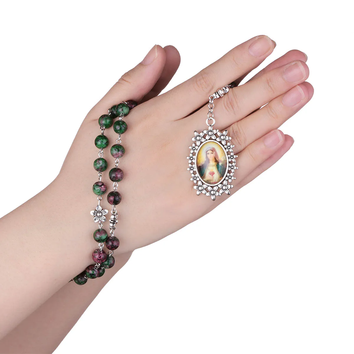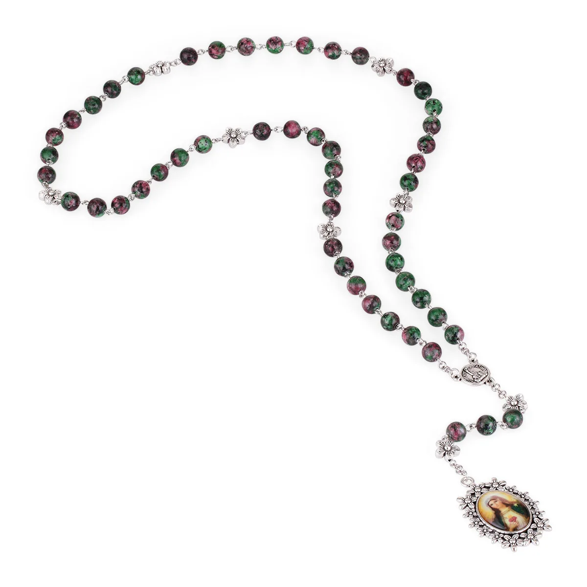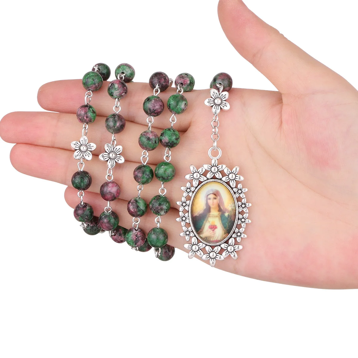 Catholic Prayer Natural Stone Beads Chain Seven Sorrows Servite Rosary Our Lady Virgin Mary Pendant Necklace Religious Jewelry