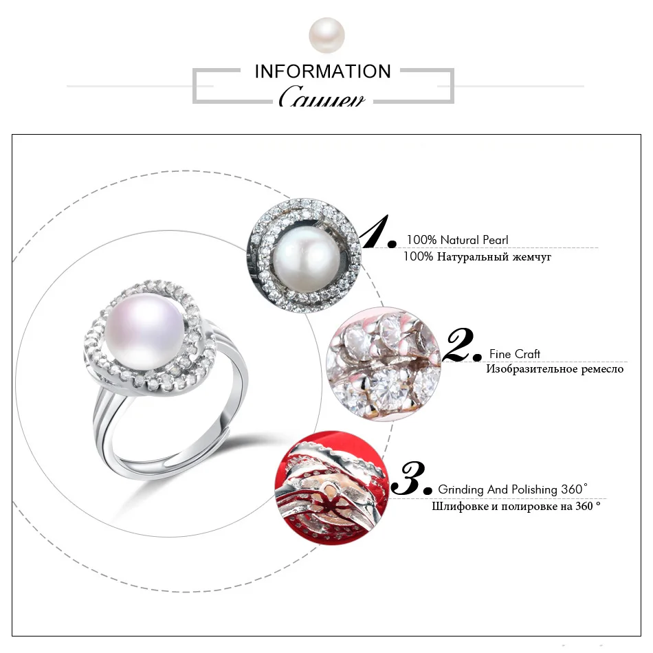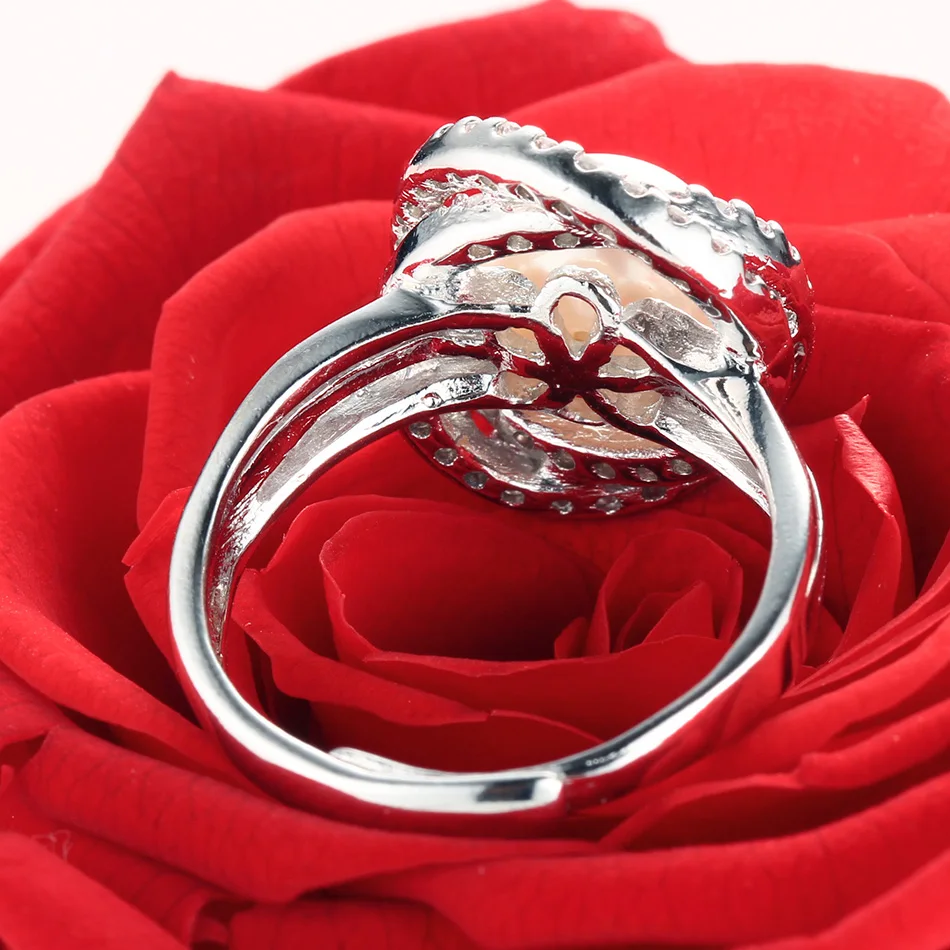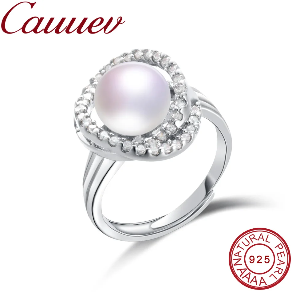 100% real pearl ring for women 925 sterling silver adjustable ring big size 10mm AAAA natural pearl jewelry