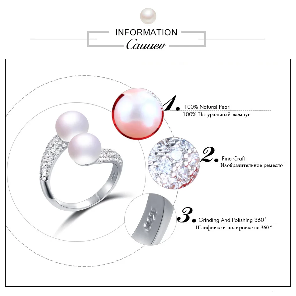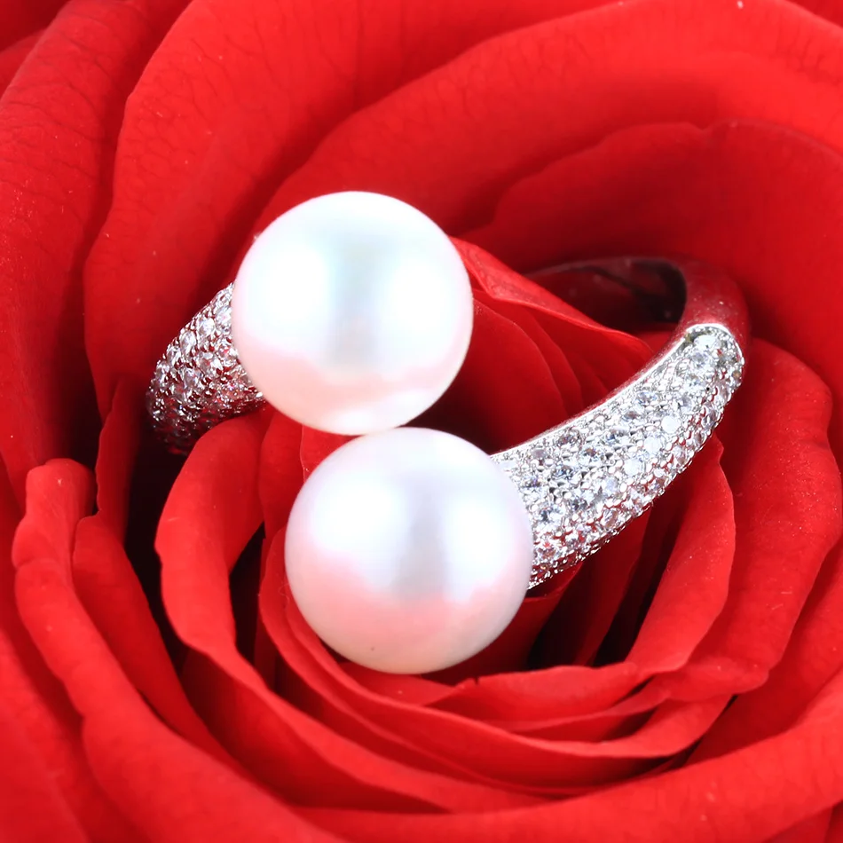 CauuevHigh Quality 925 Sterling Silver Double Pearls Rings AAA Cubic Zircon 2020 New Fashion Jewelry Vintage Wedding Rings Gifts
