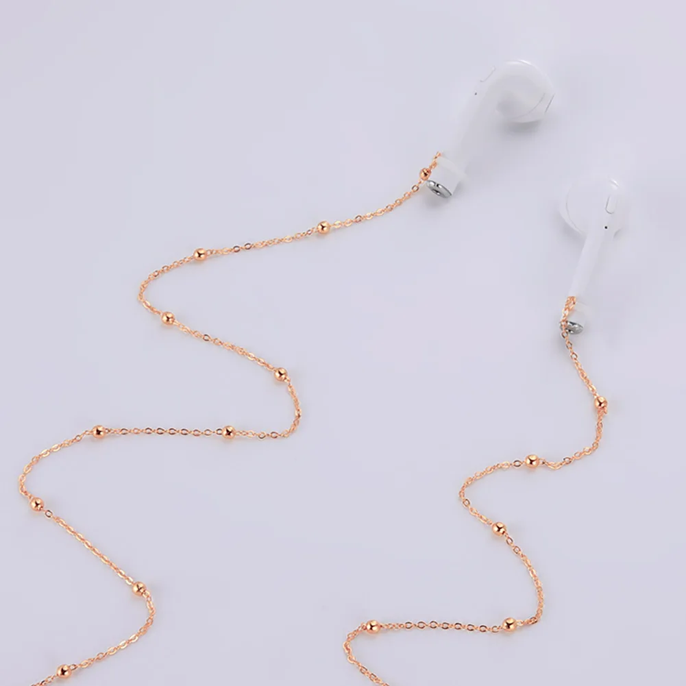 Cazador Women Wireless Earphones Anti-Lost Chain Beaded Headphone Chains Strap Retention Necklace For Airpods Gifts