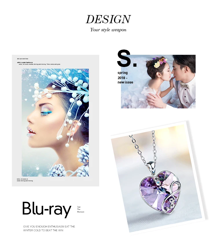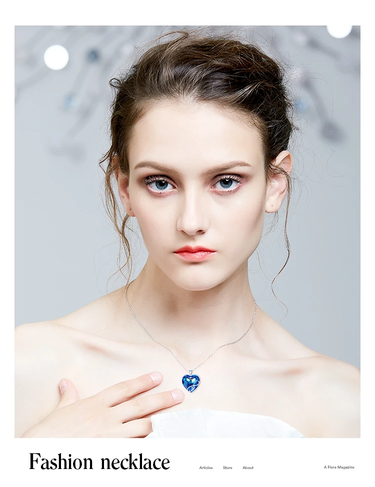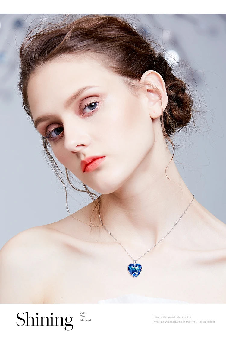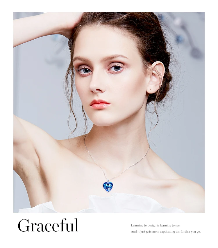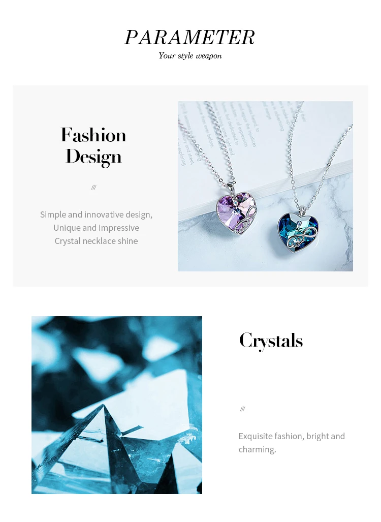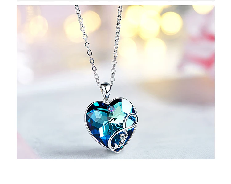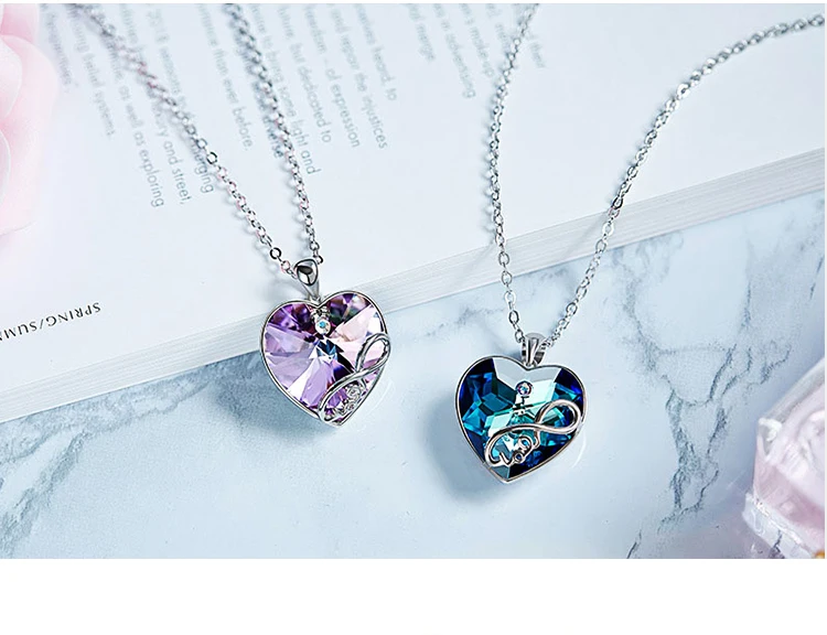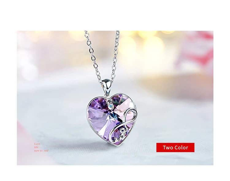 CDE Purple Love Heart Shaped Pendant Necklace Crystals for Women Girls Christmas Gift Jewelry Collar