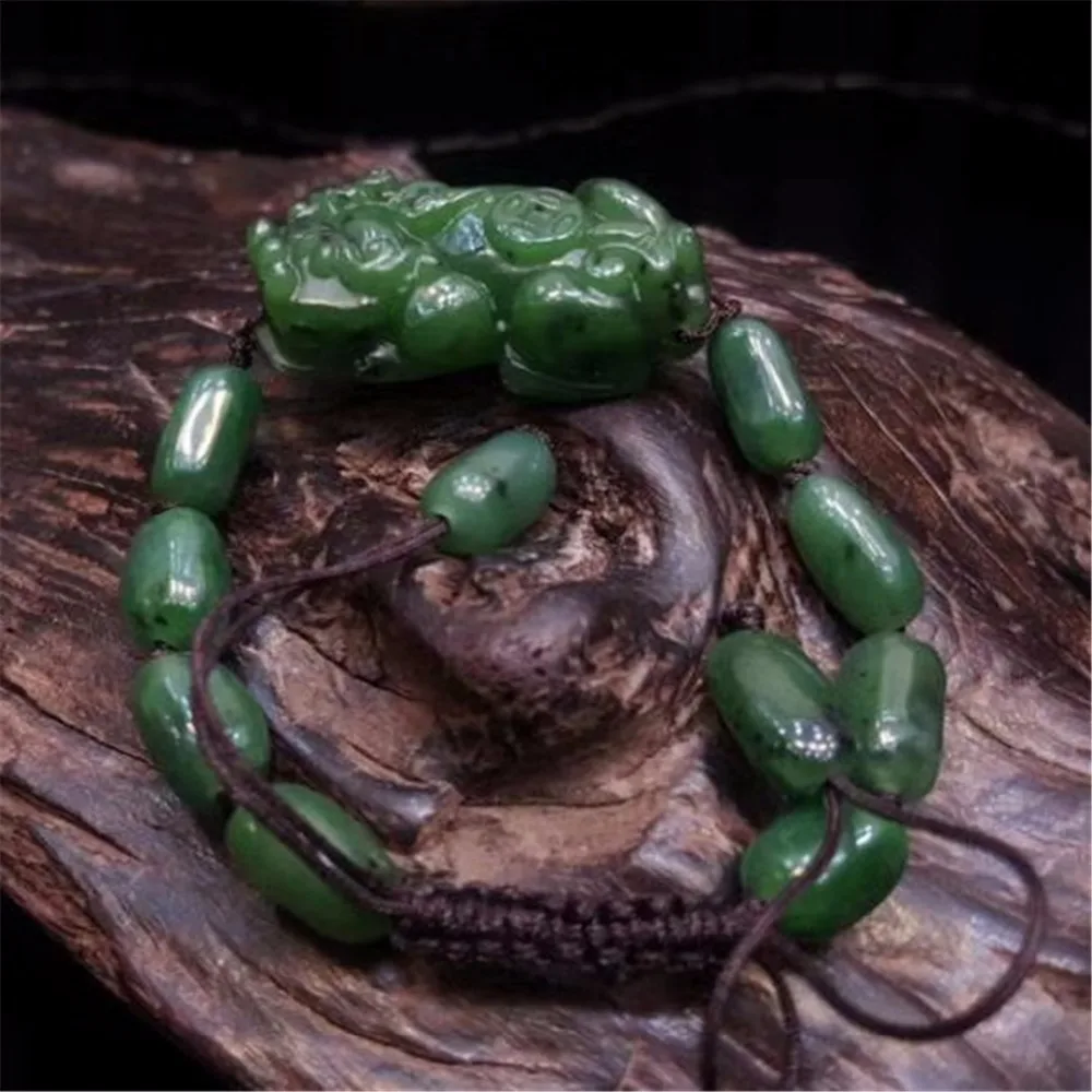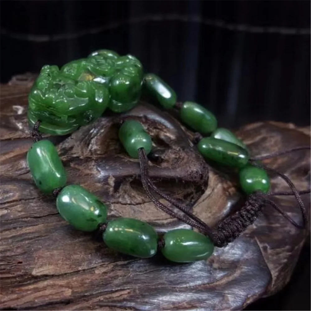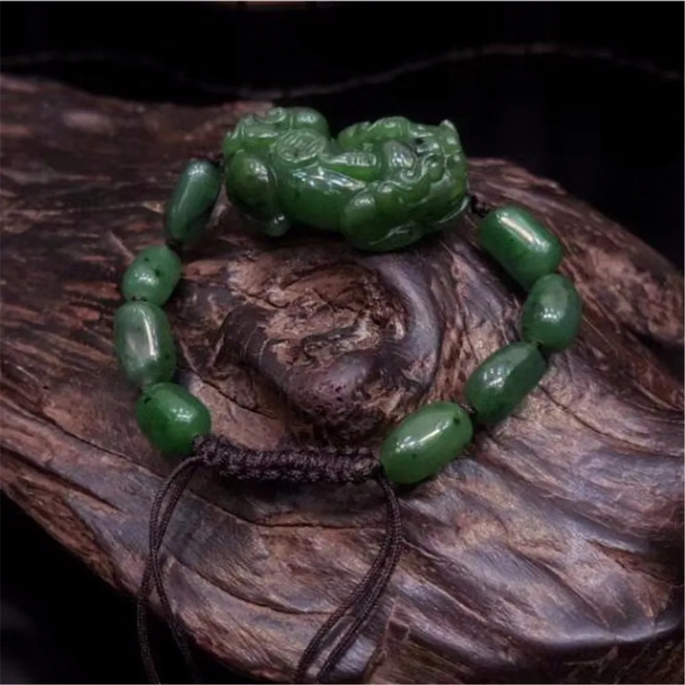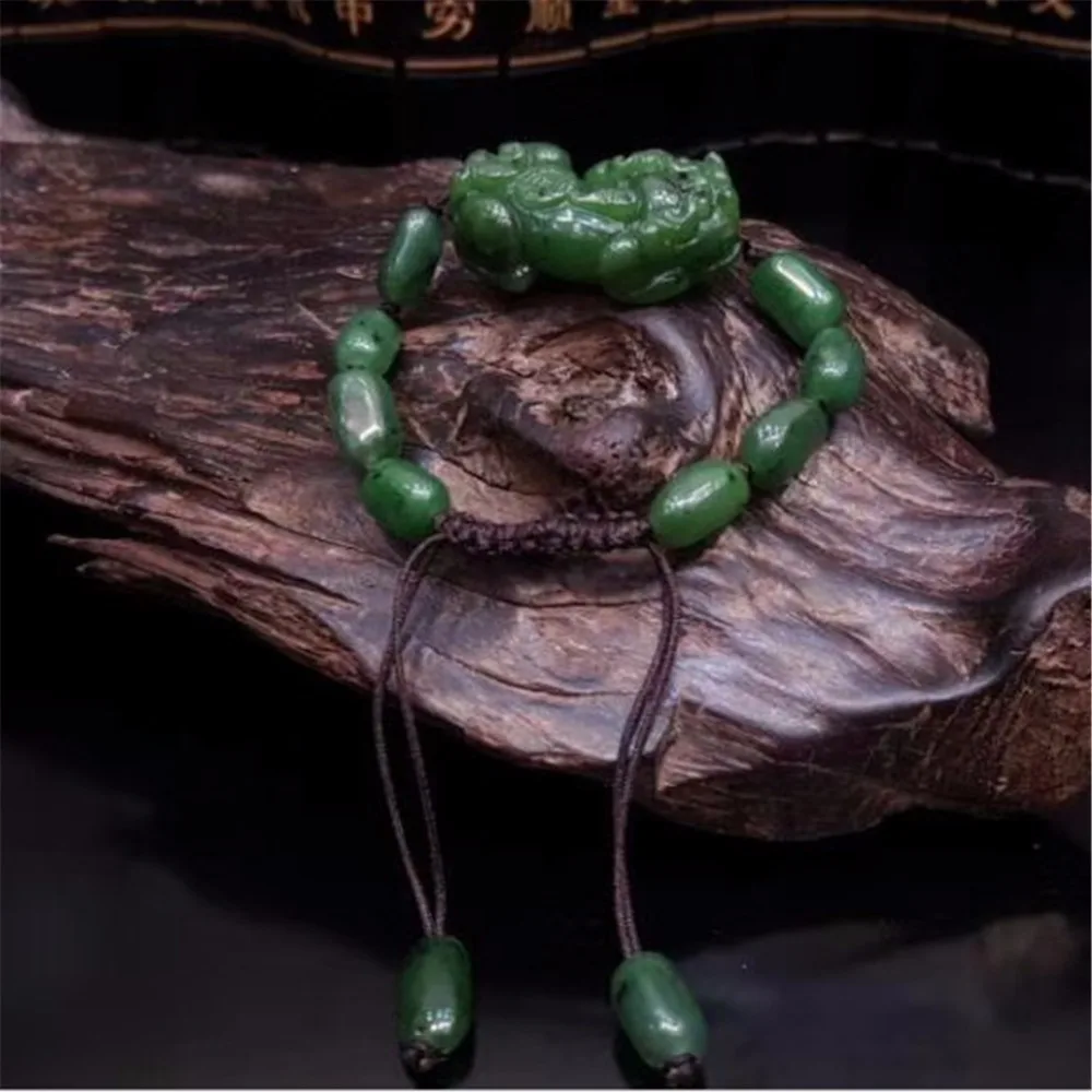 Certificate nature hetian green brave troops jade Beadse Lucky Bracelet Adjustable with gift box