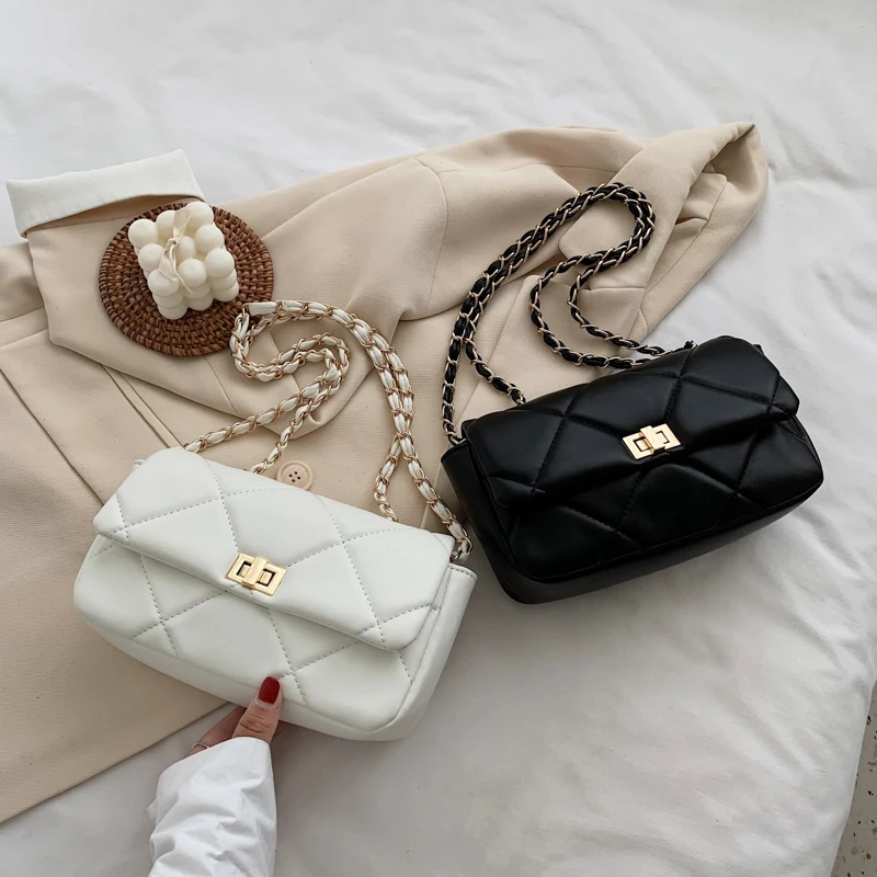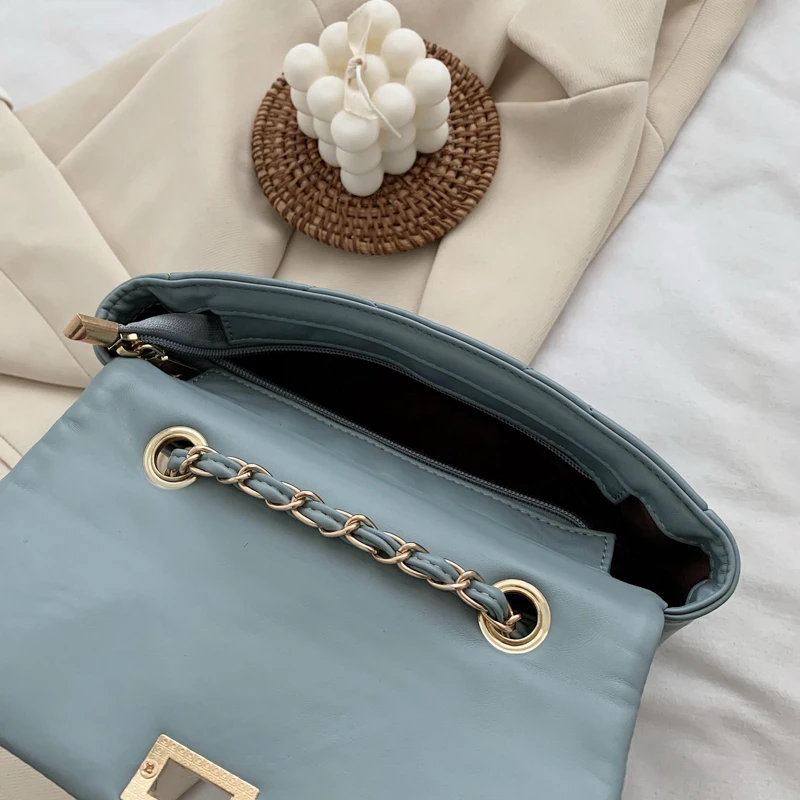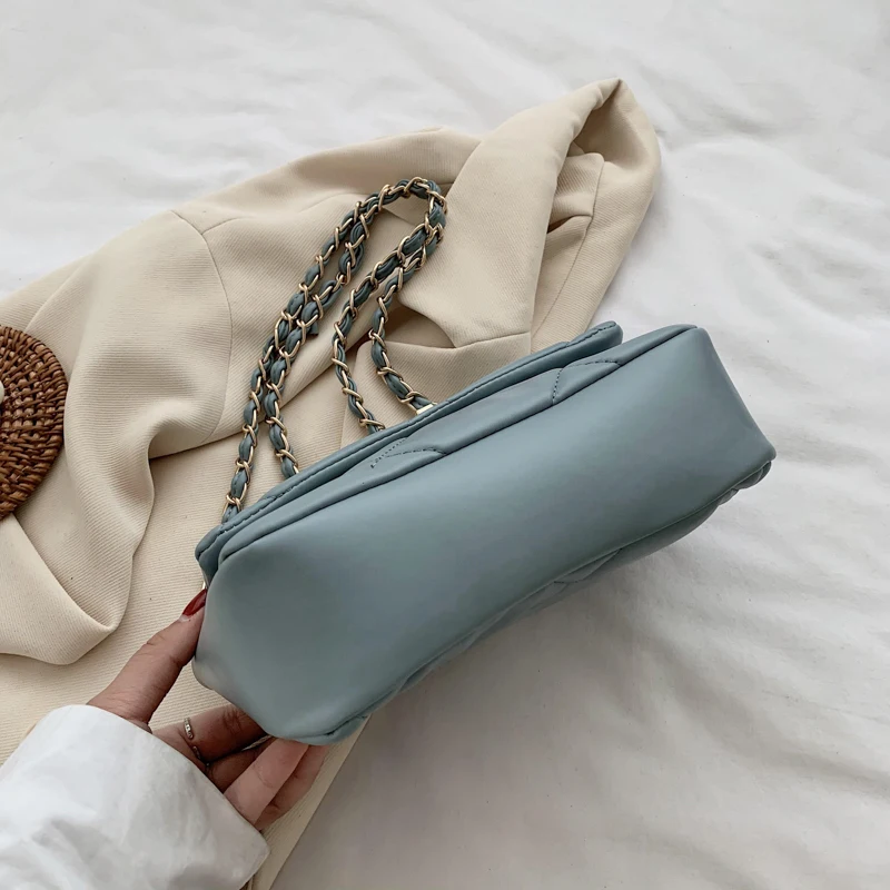 Chain Design PU Leather Crossbody Bags For Women 2022 Summer Solid Color Shoulder Handbags Female Travel Cross Body Bag