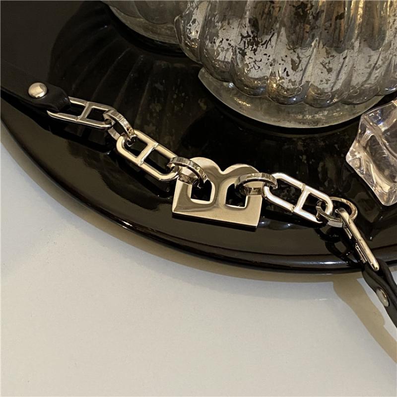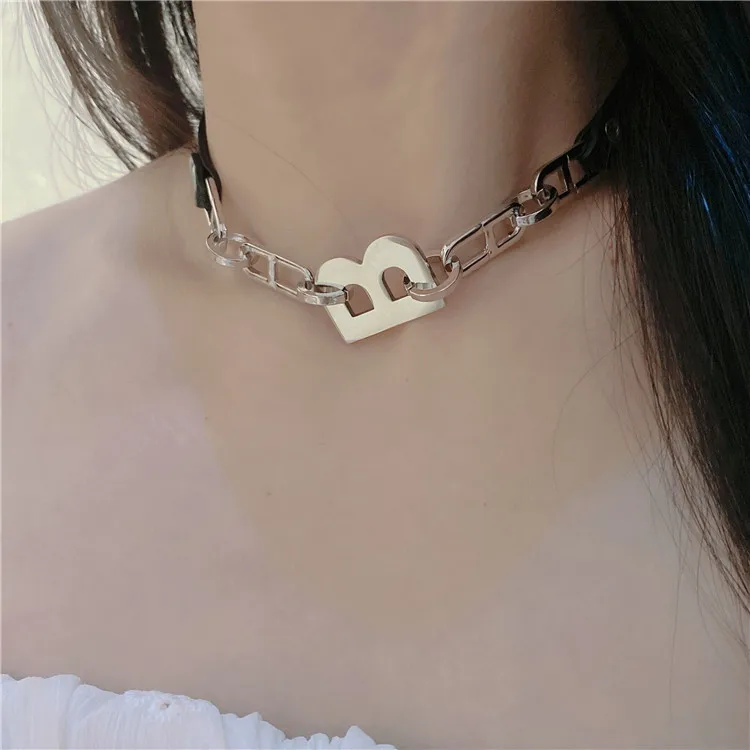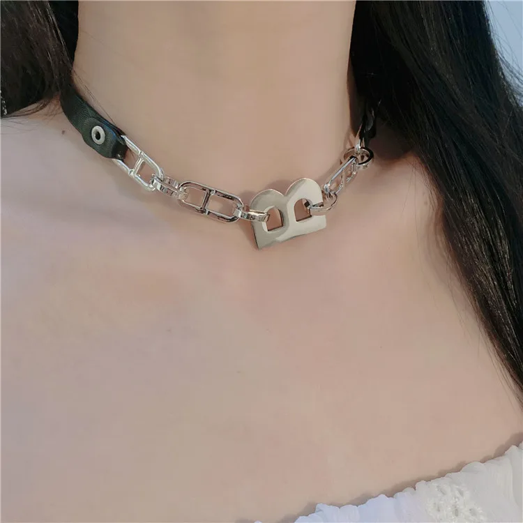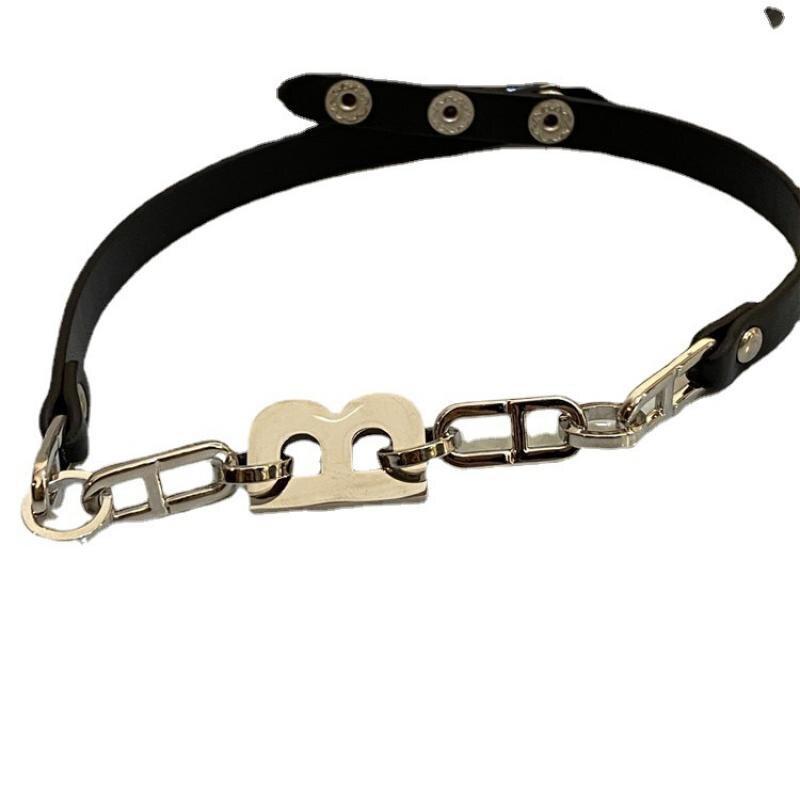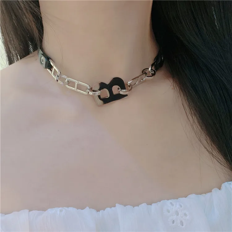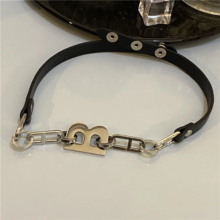 Chain Stitching Letter B Black Leather Necklace Gothic Style Dark Design Necklace Female Girl Personality Necklace
