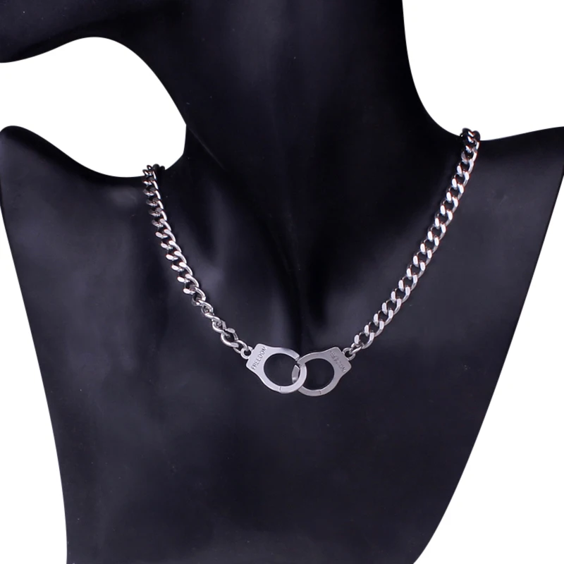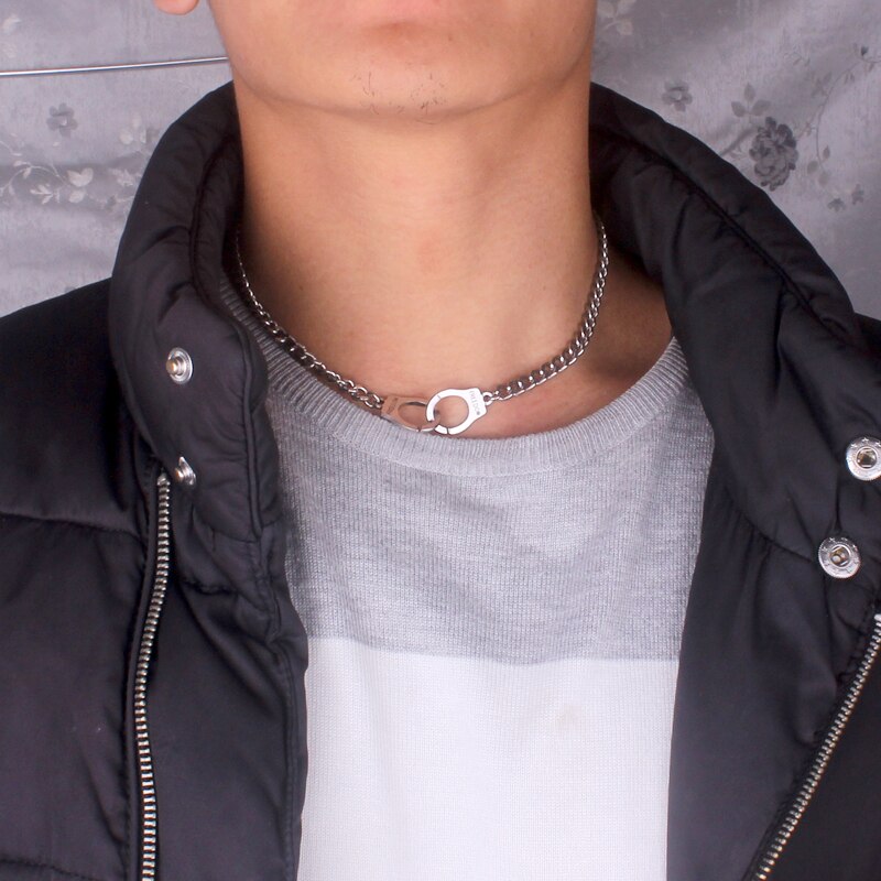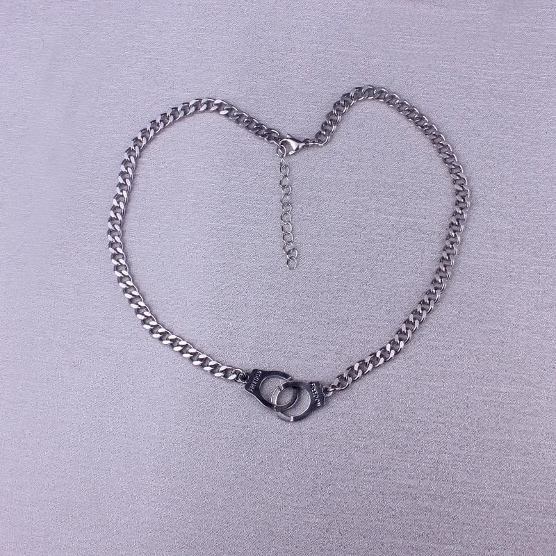 Chain Width 6MM All Stainless Steel Hiphop Punk Handcuff Necklace For Women Men Cool Rock Chokers Necklaces Jewelry di204