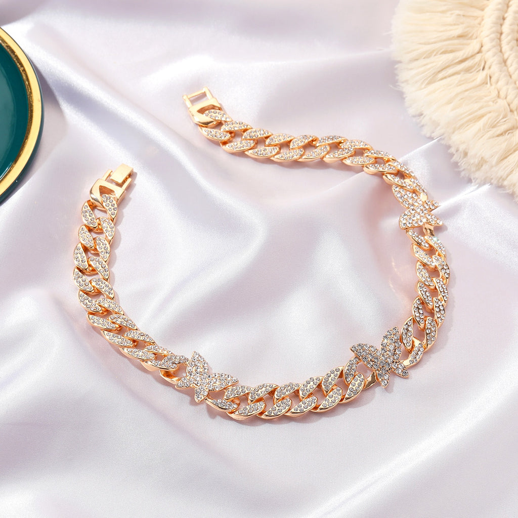 Charming Cuban Rhinestone Butterfly Women's Necklace Retro Ethnic Temperament Full of Diamonds Adjustable Women Necklace Jewelry