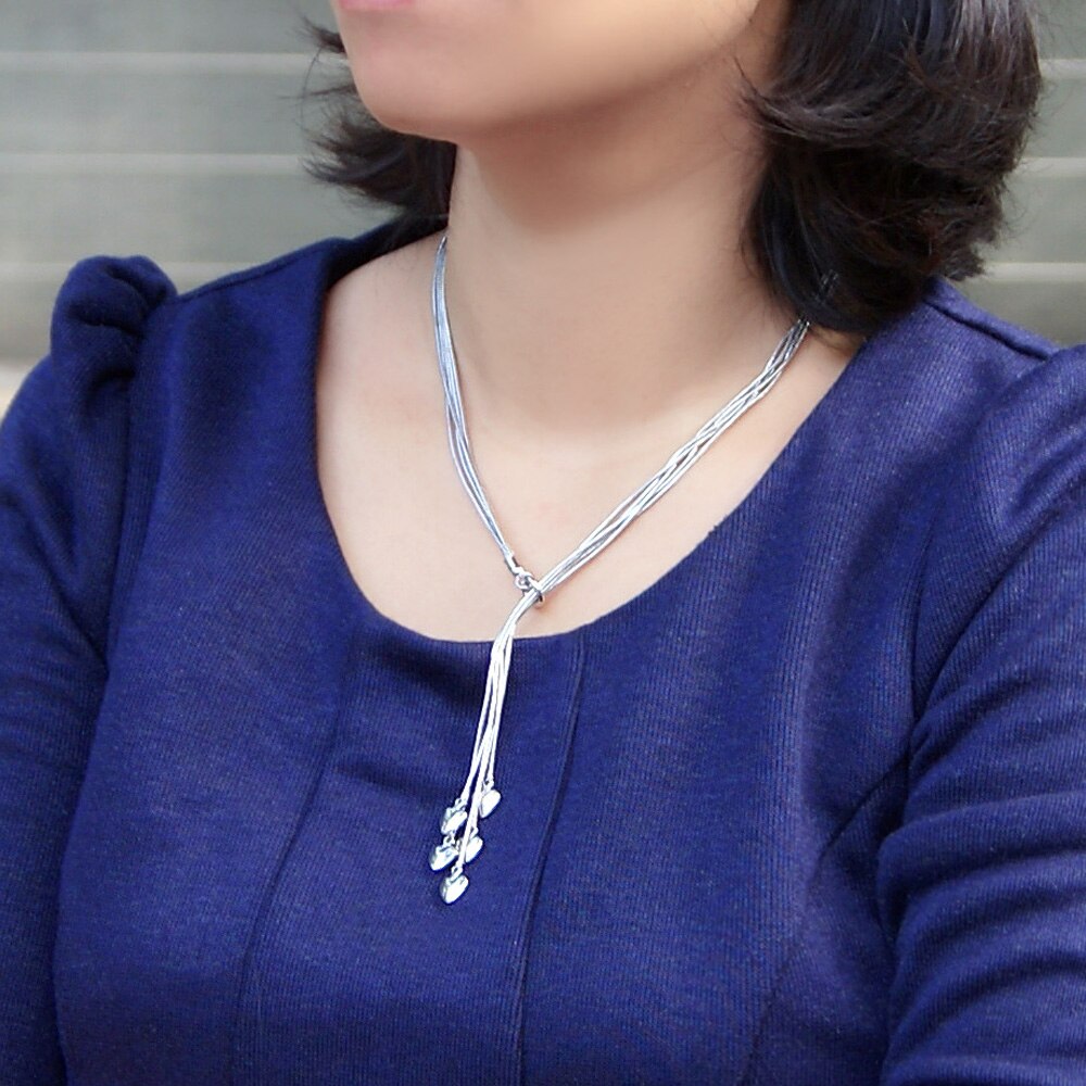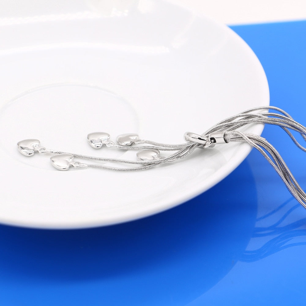 charms tassel romantic heart 925 Stamped Silver Necklace for women fine wedding party Jewelry Christmas gifts