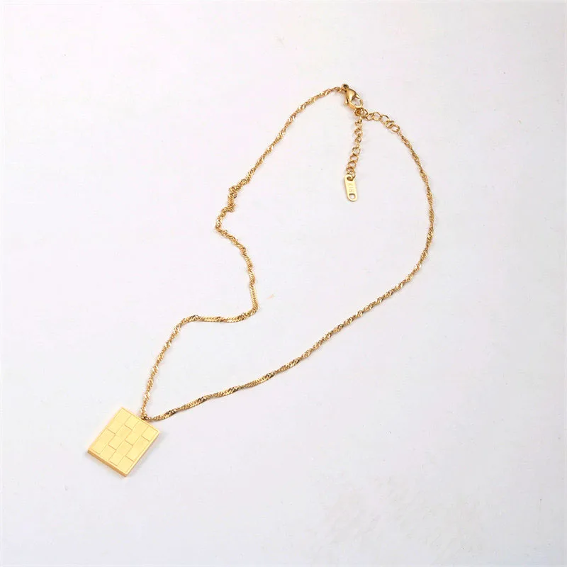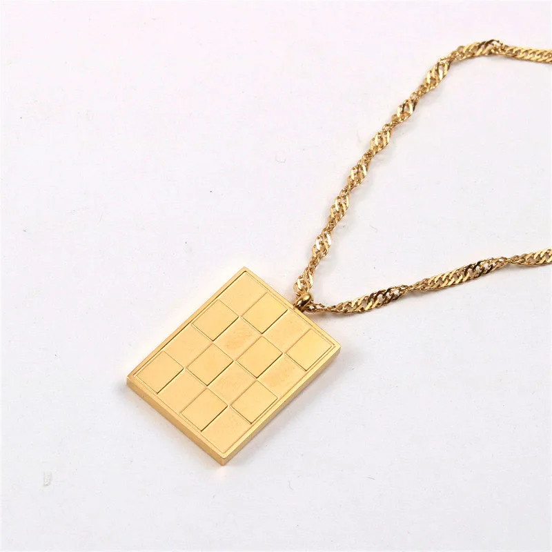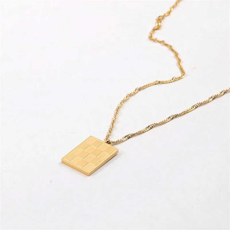 Checkerboard plaid square pendant necklaces for women stainless steel gold vintage necklace trendy women items 2022