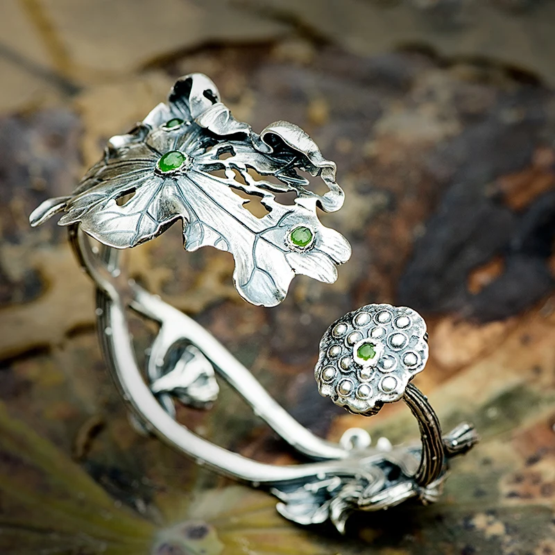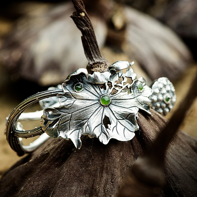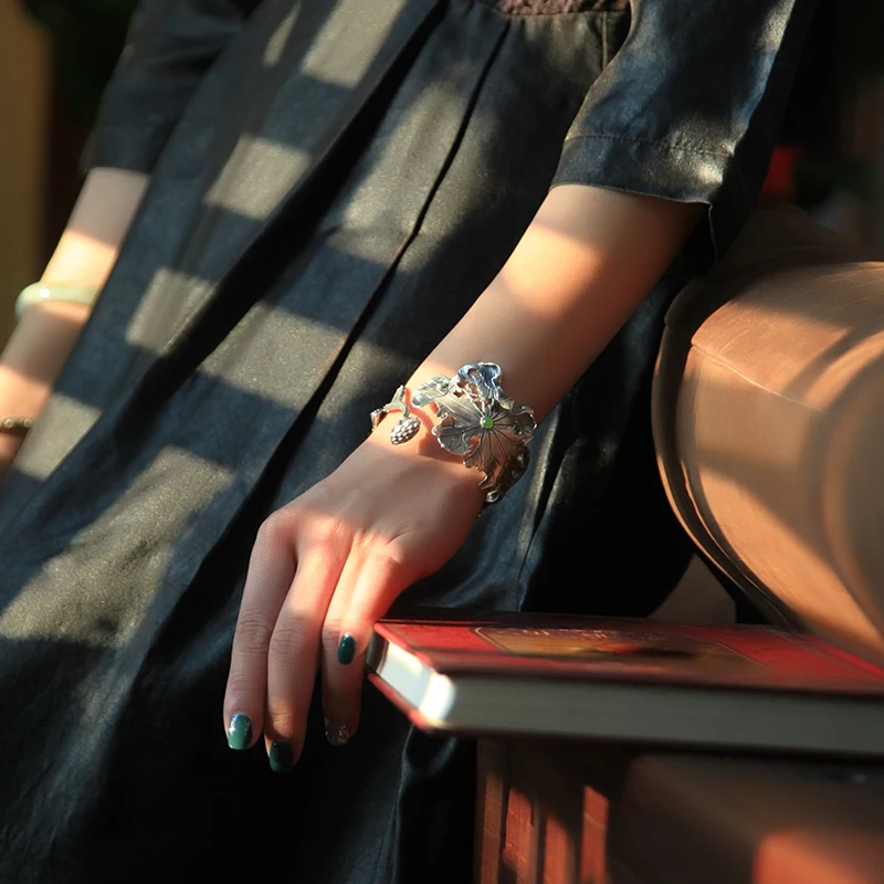Cheng Centennial 925 sterling silver bracelet Autumn lotus National wind Personality Women's gift