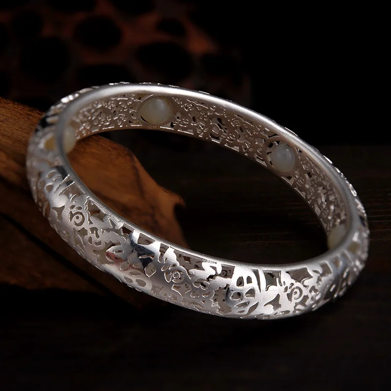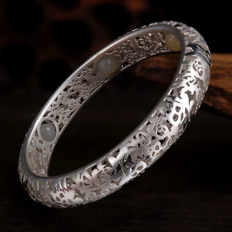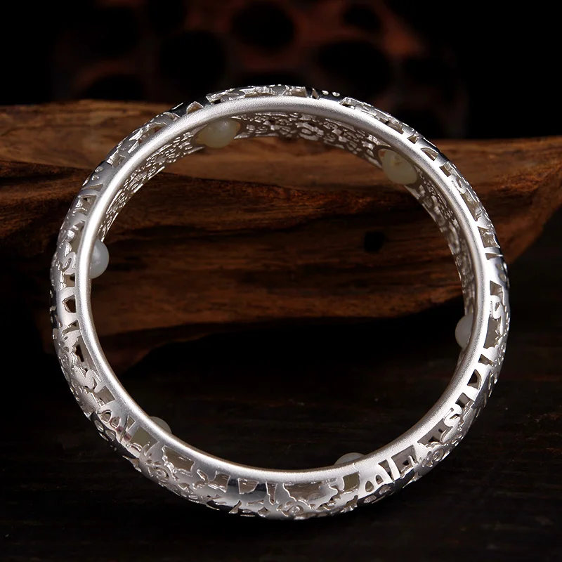 Cheng Centennial female sterling silver Hollow out Jade beads massage effect Grind arenaceous qualitative jewelry