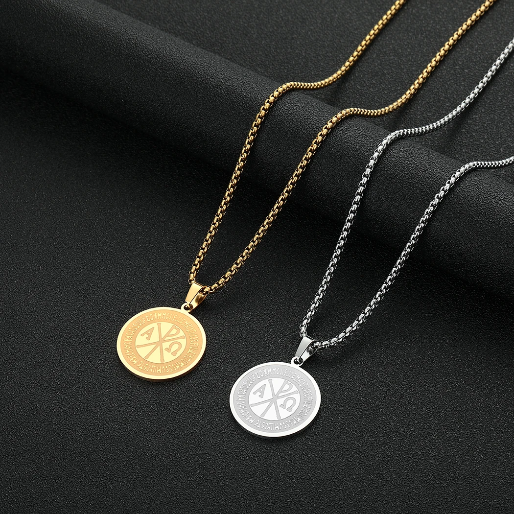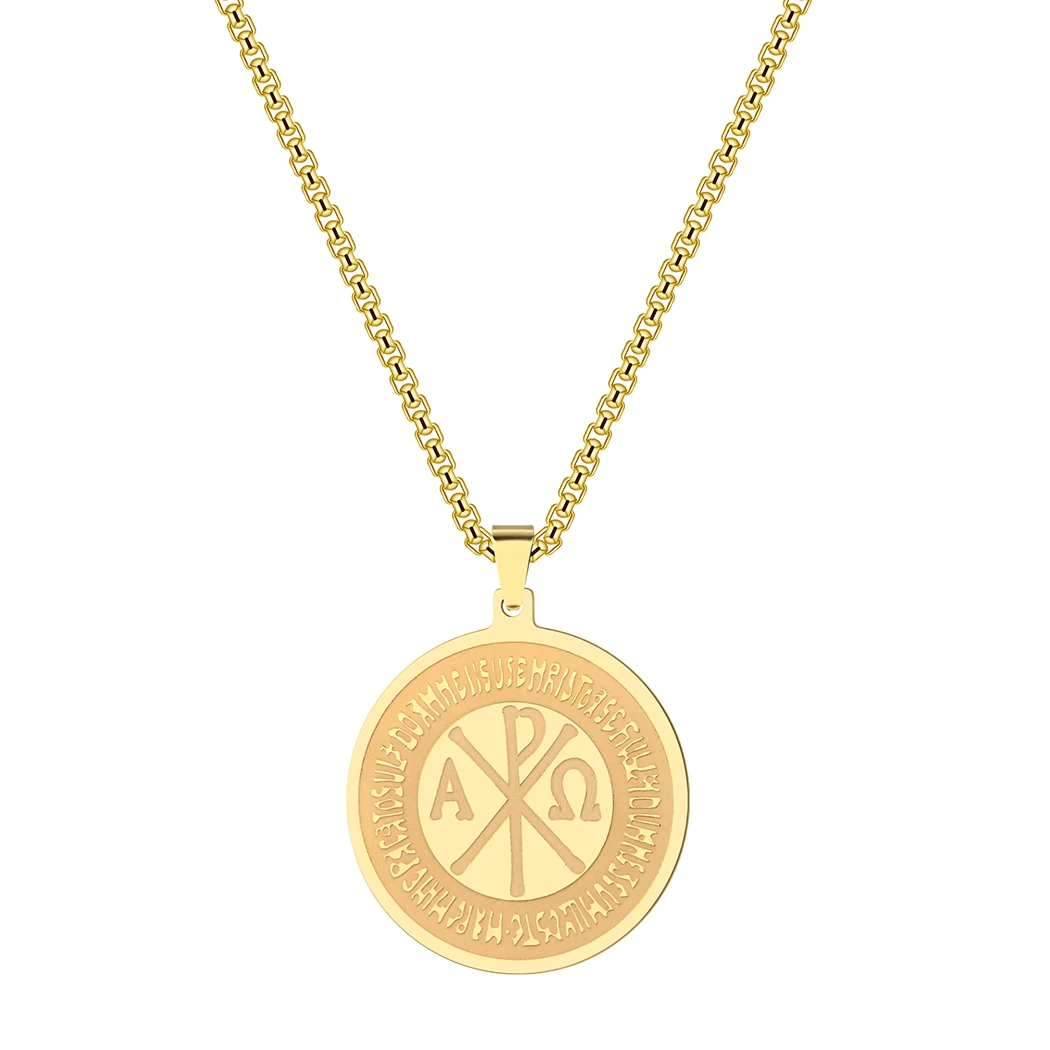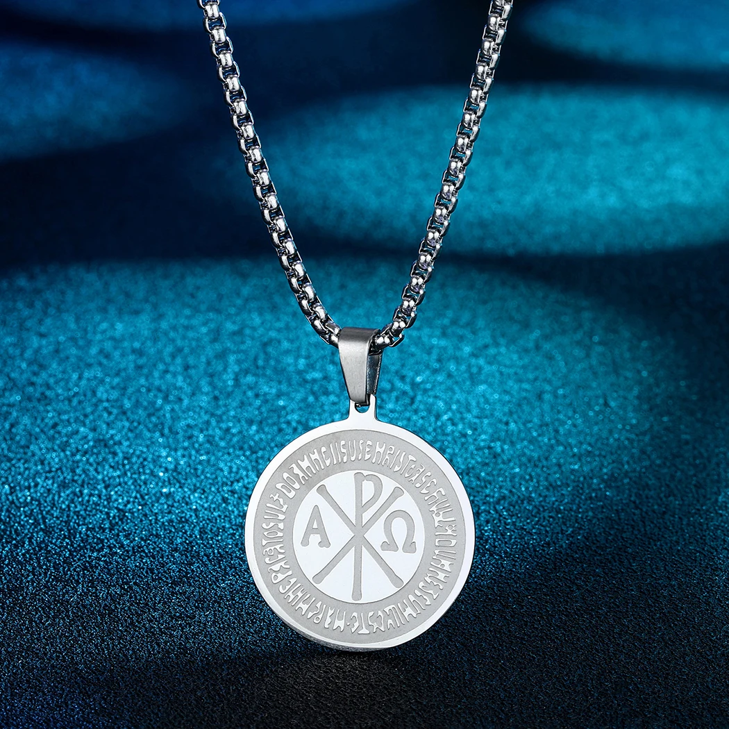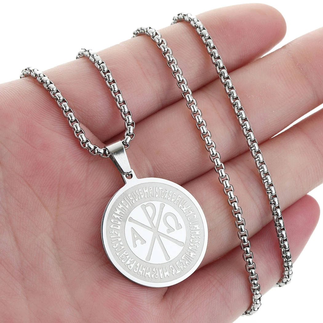 Chi Rho And Constantine Cross Amulets Men Necklace Religious Jewelry Hebrew Greek Crosses Jesus Stainless Steel Necklace Gift