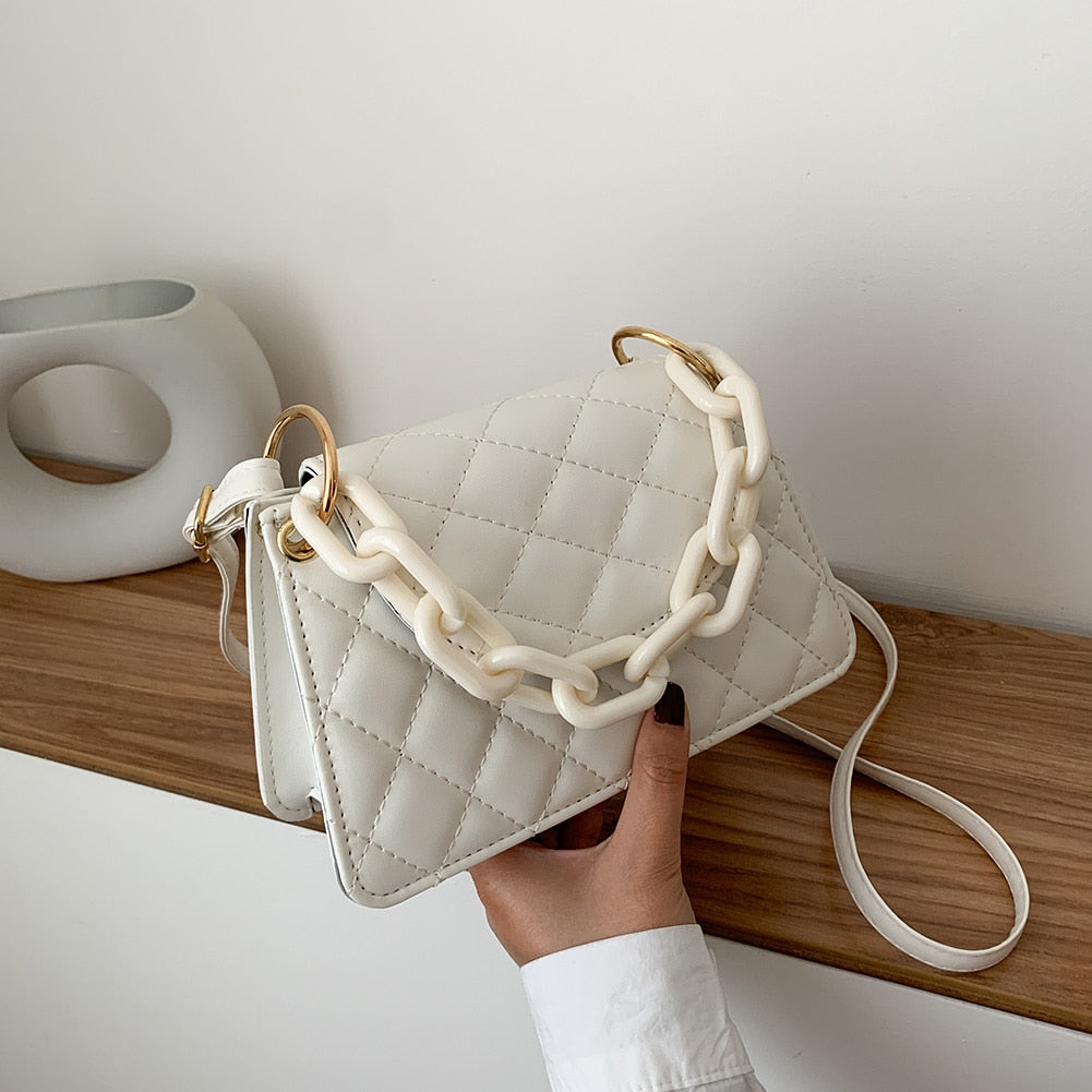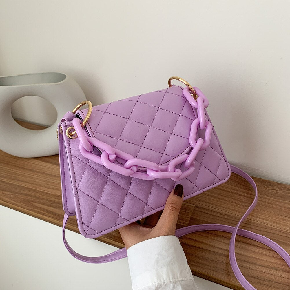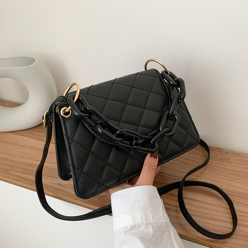 Chic Chain Women Small Messenger Bag Lattice Pattern Classic Design PU Leather Daily Candy Shoulder Bag Crossbody Handbags 2022