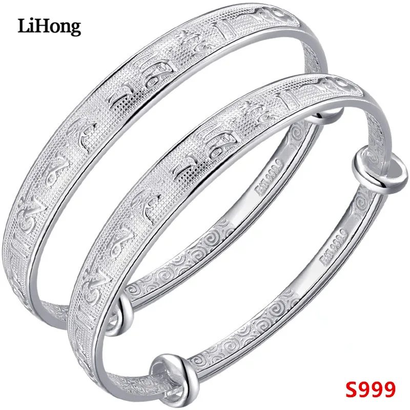 Children's Jewelry S999 Sterling Silver Bracelet Six Words Baby Bangle & Anklet Birthd Gift