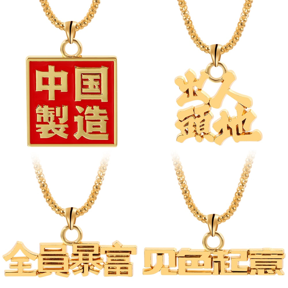 Chinese Character Necklace “Made in China”,“Chasing a Dream","Become super-rich”,"I like you at first sight” For Man Gifts
