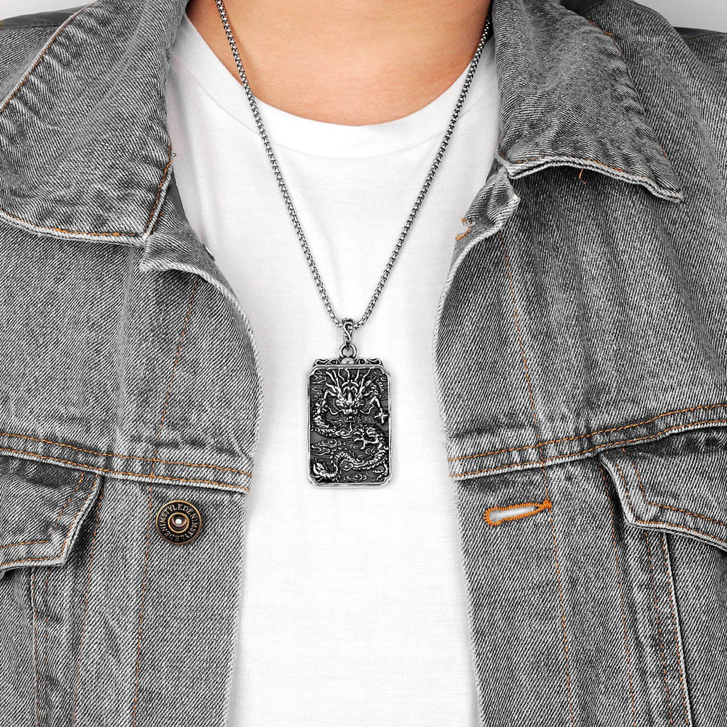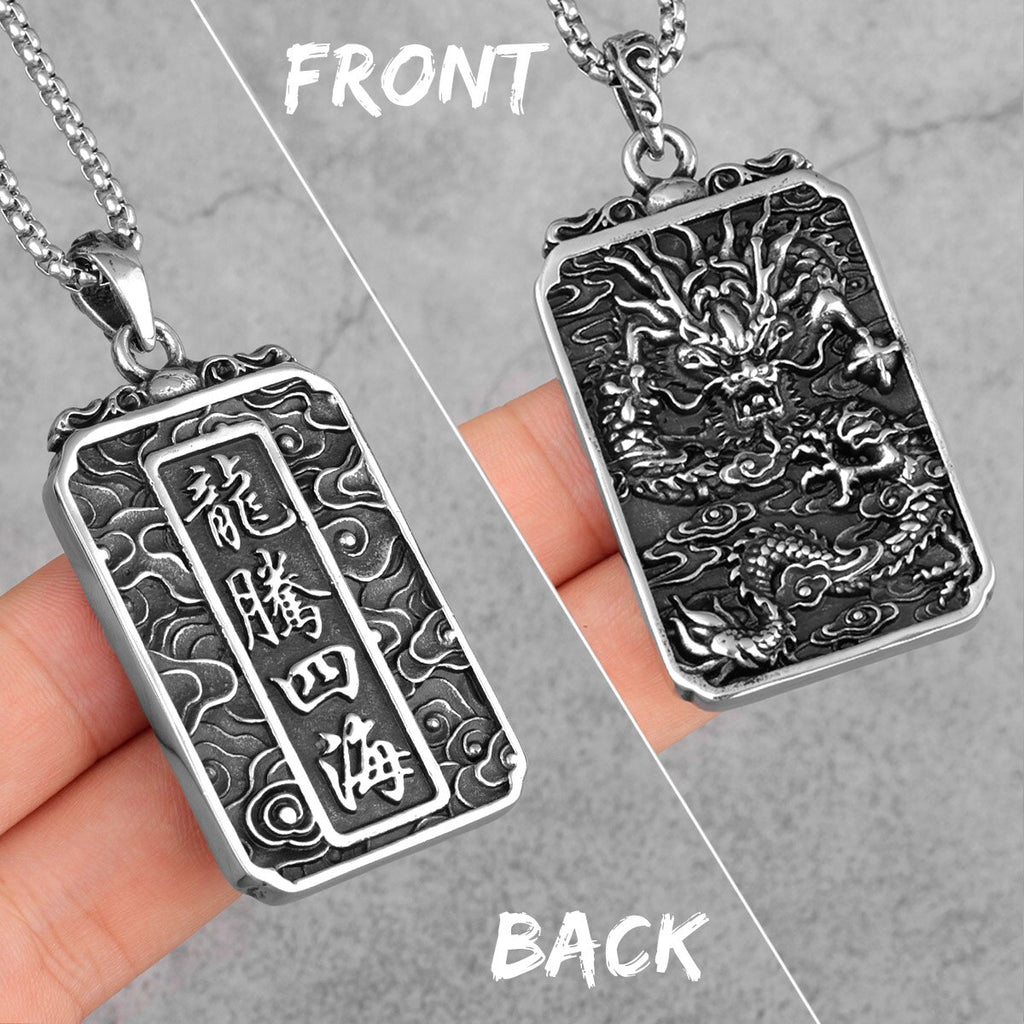 Chinese Dragon Good Meaning Amulet Stainless Steel Men Necklaces Pendants Chain for Boyfriend Jewelry Creativity Gift