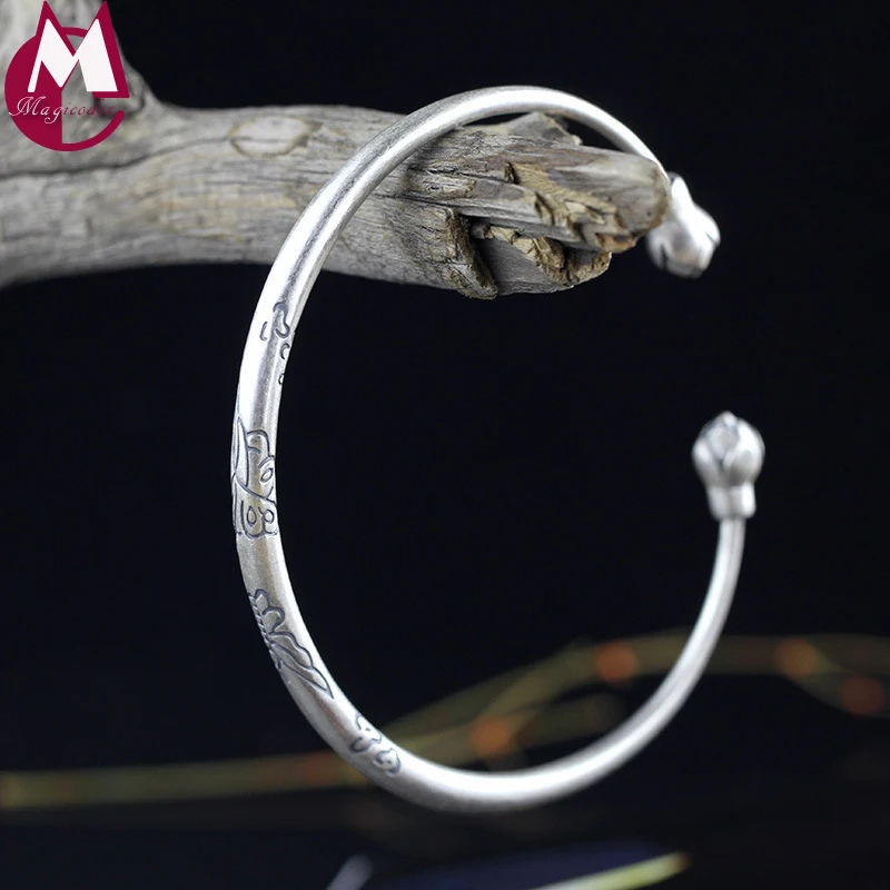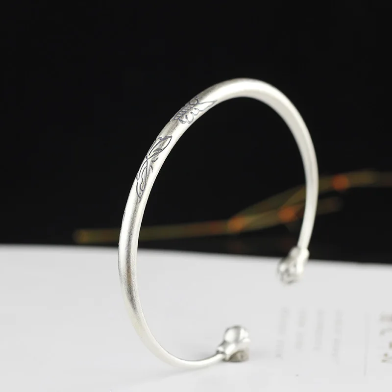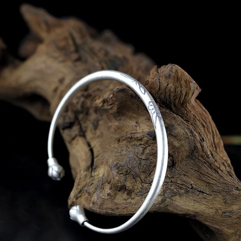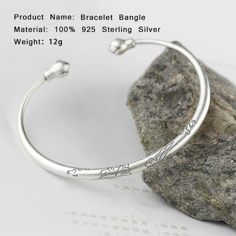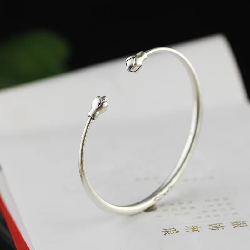 Chinese Style Flower Women Bracelets & Bangles 100% 925 Sterling Silver Bracelets For Women Simple Leaves Vintage Jewelry SB22