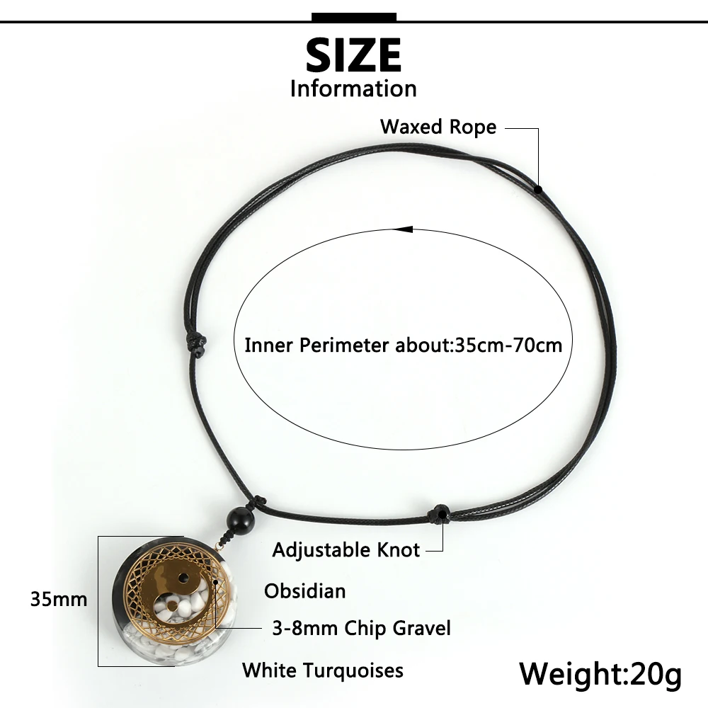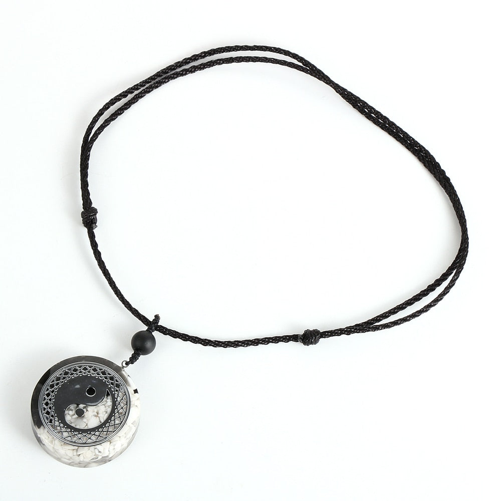 Chinese Tai Chi Yin and Yang Orgone Pendant Necklace For Men Women 35mm Big Round Statement Pendants Natural Stone Resin Jewelry