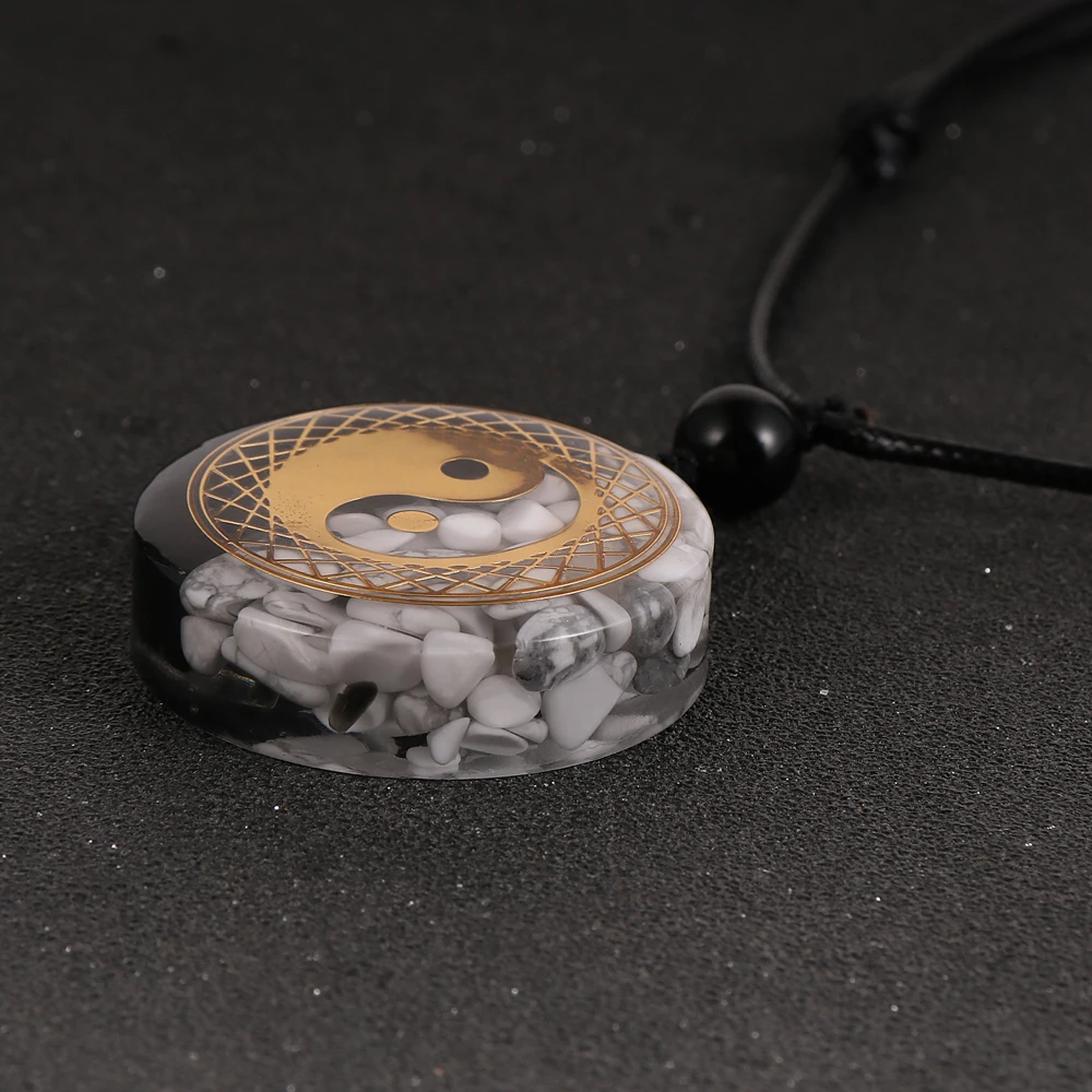 Chinese Tai Chi Yin and Yang Orgone Pendant Necklace For Men Women 35mm Big Round Statement Pendants Natural Stone Resin Jewelry