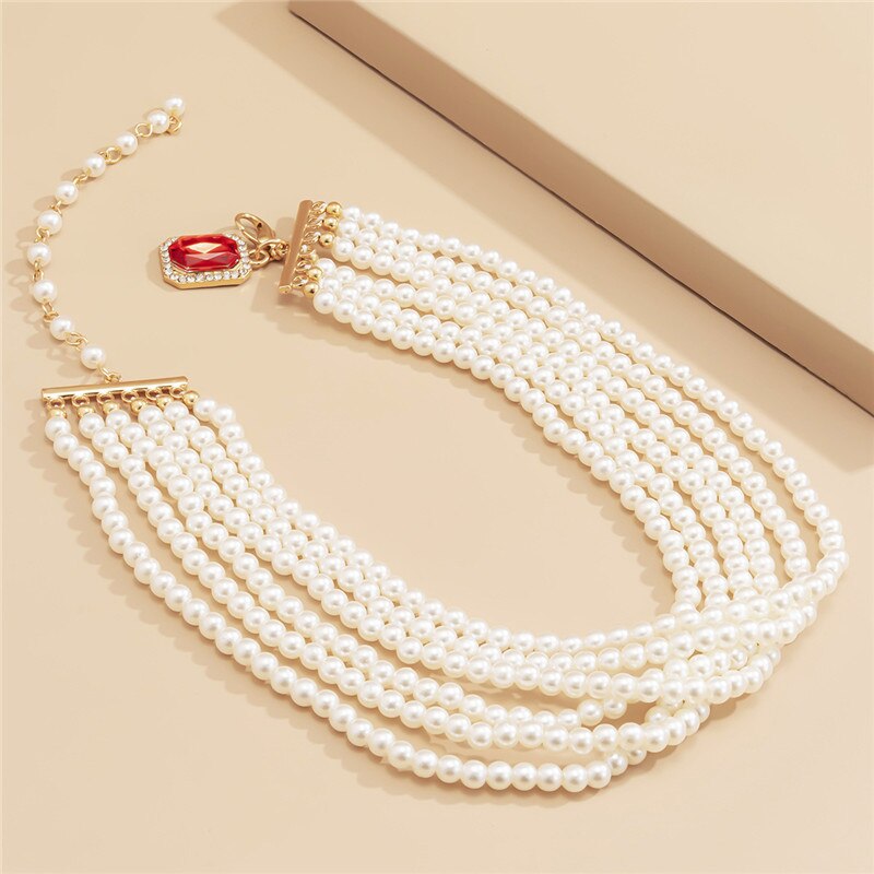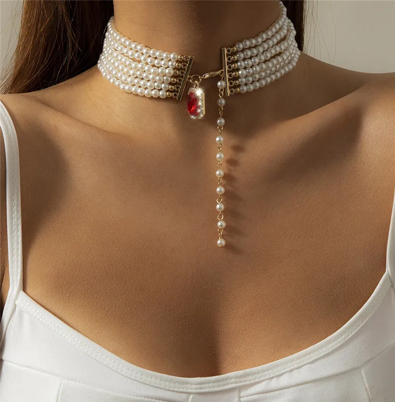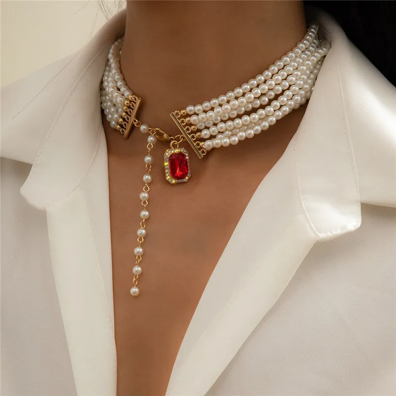 Chocker High-end Baroque Ruby Pendant Bead Set Clavicle Chain Retro Ethnic Gemstone Woemn's Neck Chain Unique Trinket