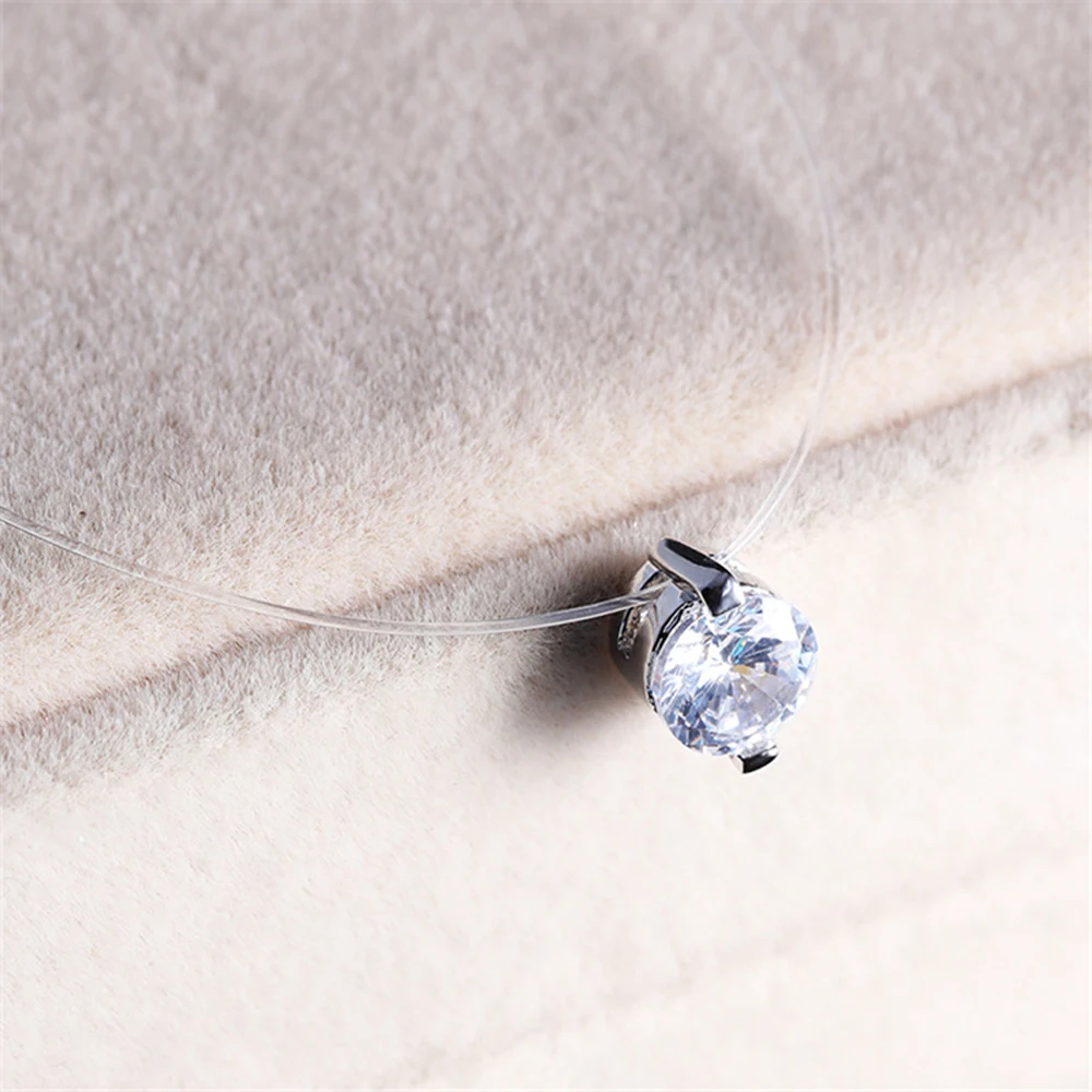 Choker Invisible Fish Line Crystal Necklace Pendants Neck Zircon Women Clavicle Chain Lady Feminino Collar