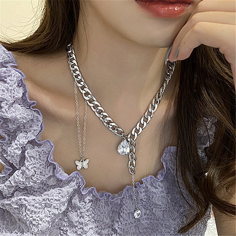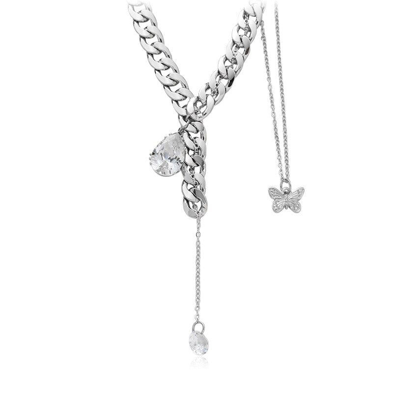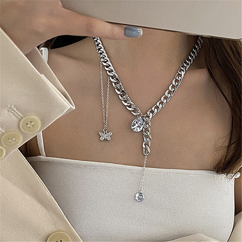 Choker Necklace Cubic Zircon Plated Butterfly Necklace Short Women Summer Holiday Gift Jewelry Wholesal