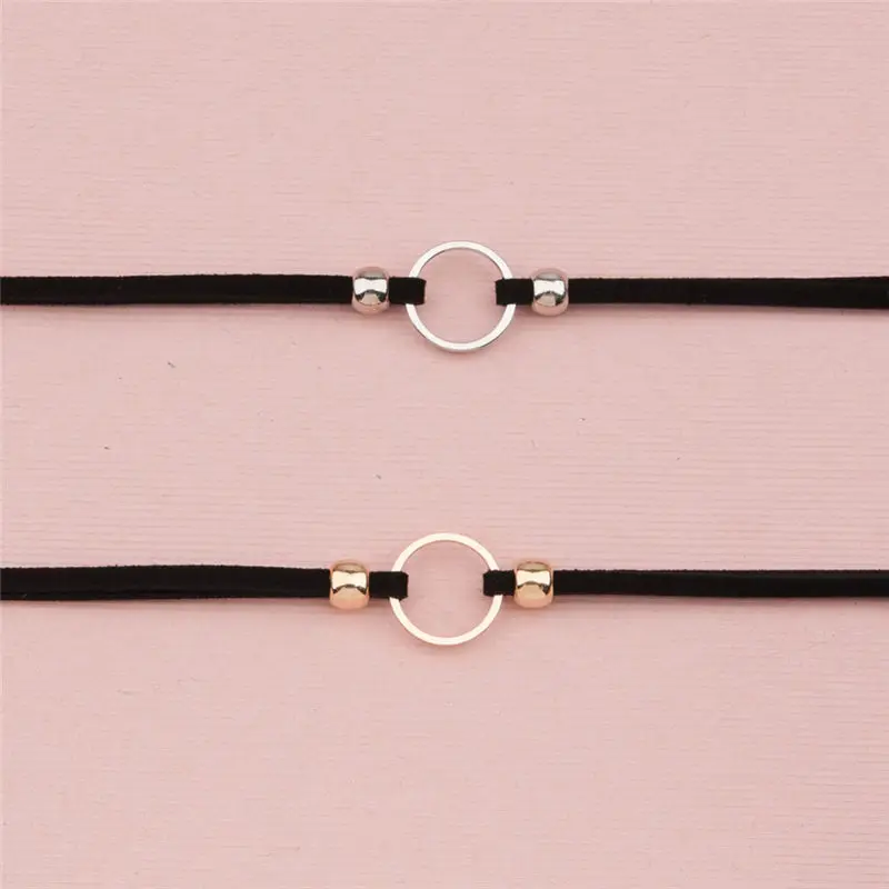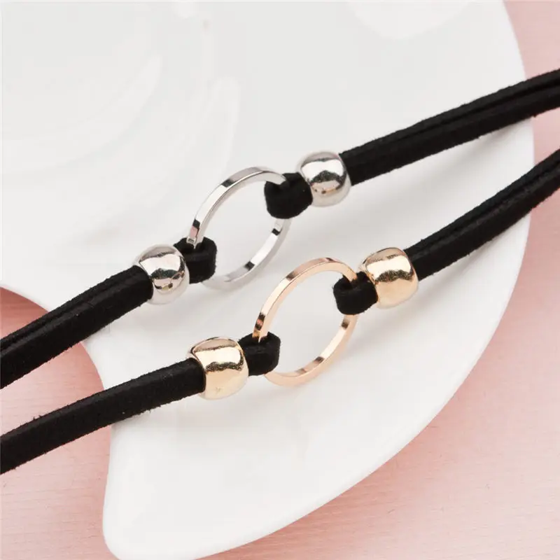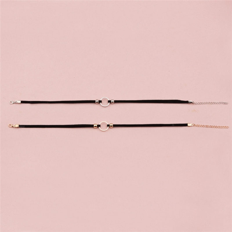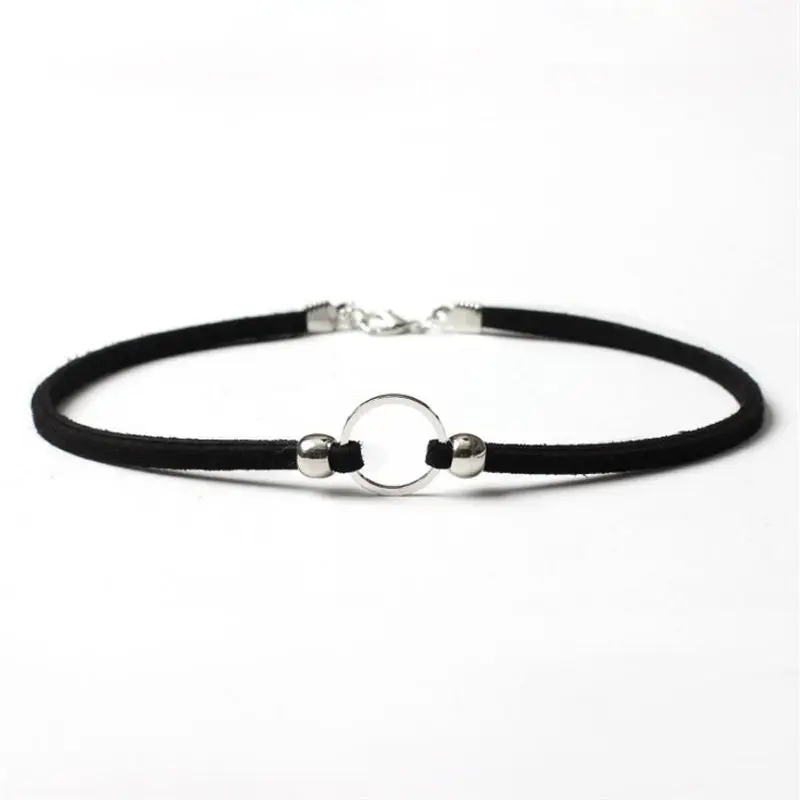 Choker Necklace Velvet Satin Copper Geometric Circle Black For Women Girl Jewelry Gift 32cm(12 5/8") Long, 1 PC