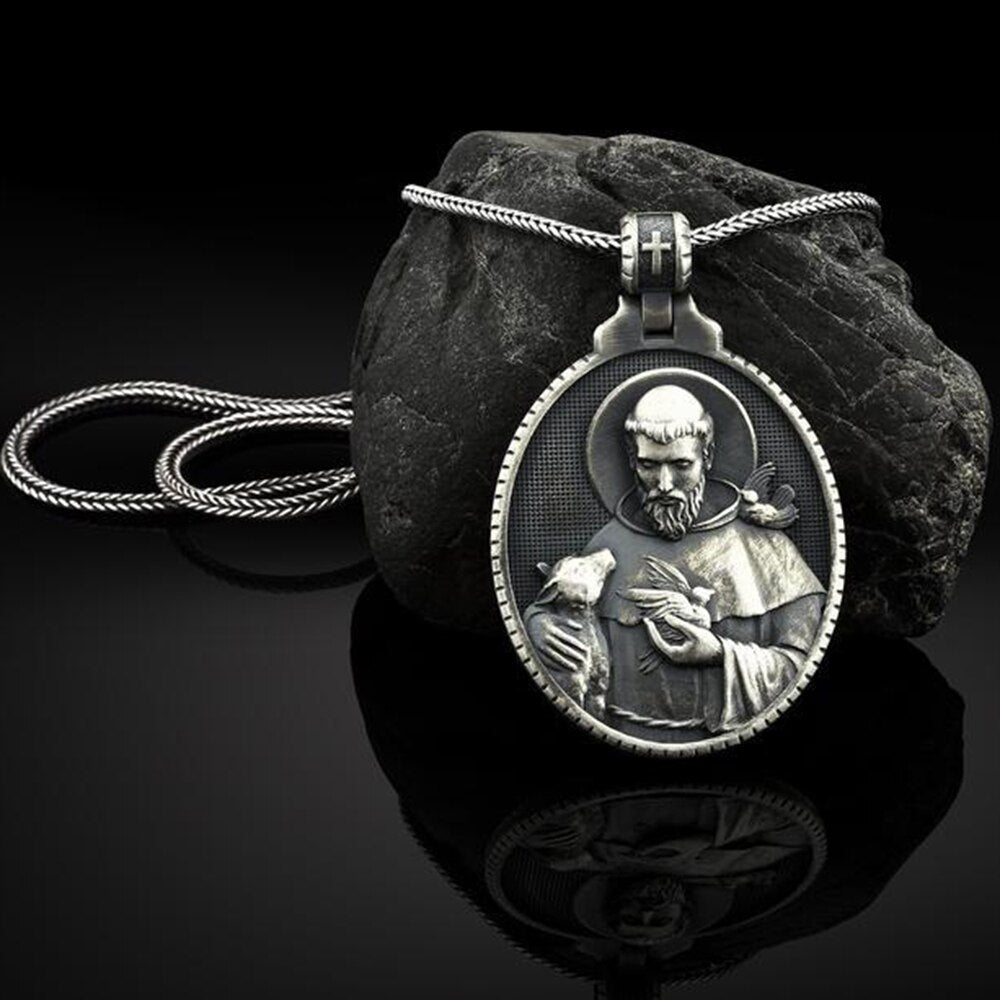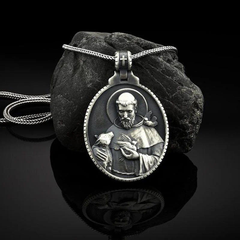 Christian Couple pendants Necklace Saint Francis Medal Pendant Religious Faith Catholic Men's Pendant Necklace