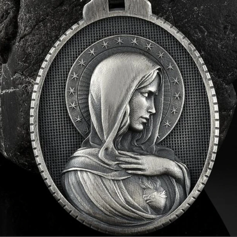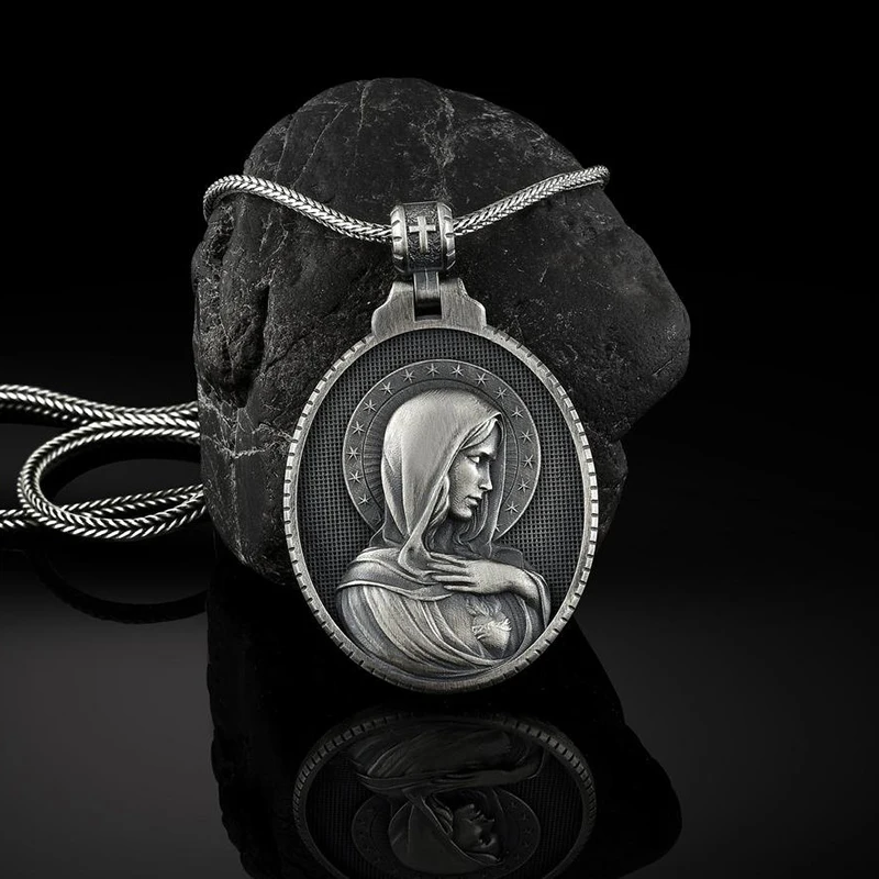 Christian Mary Sacred Heart Pendant Necklace Men's Retro Catholic Religious Tag Chain Necklaces for women