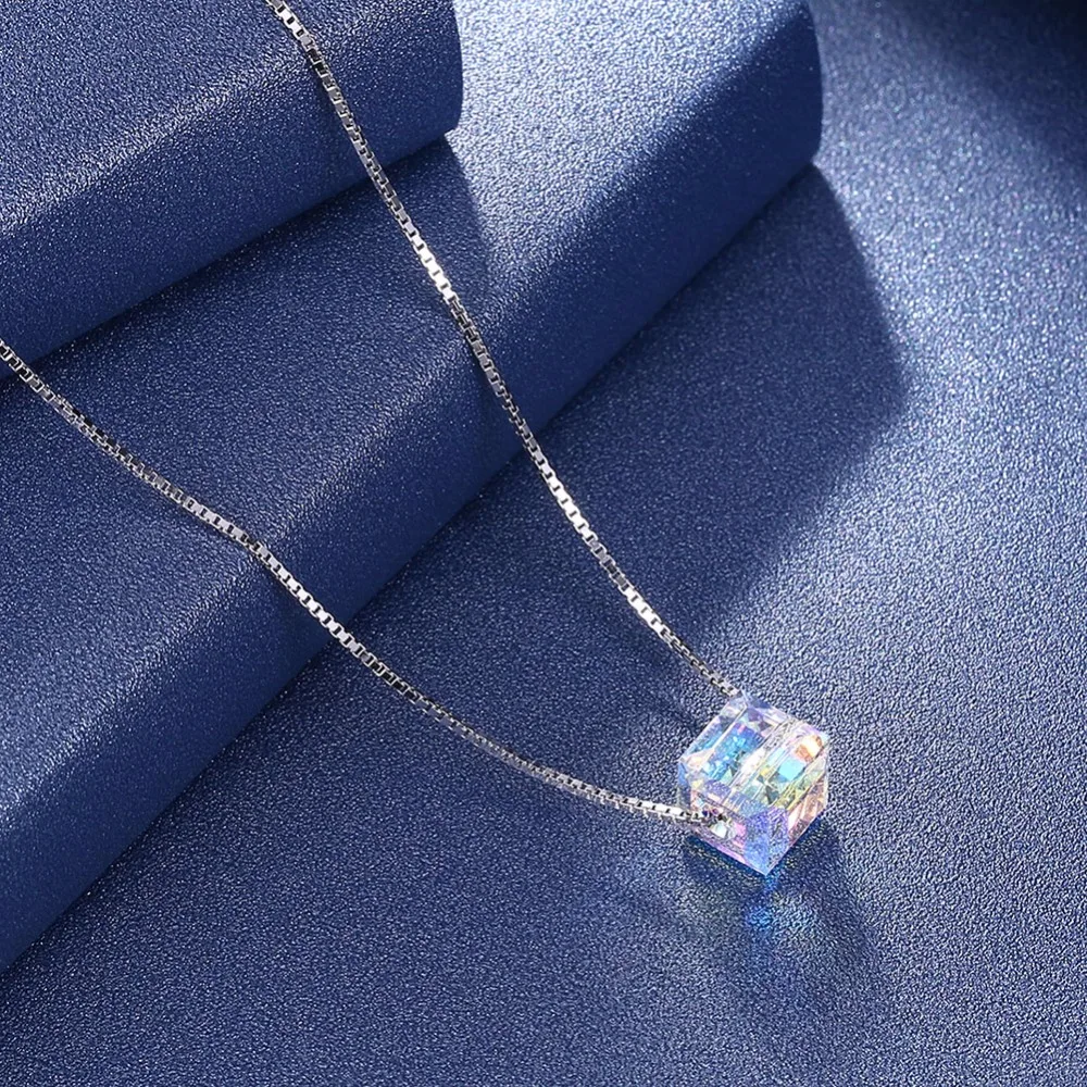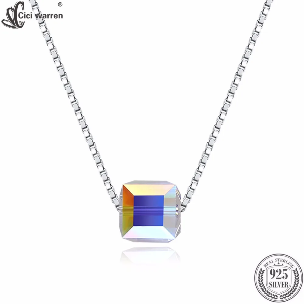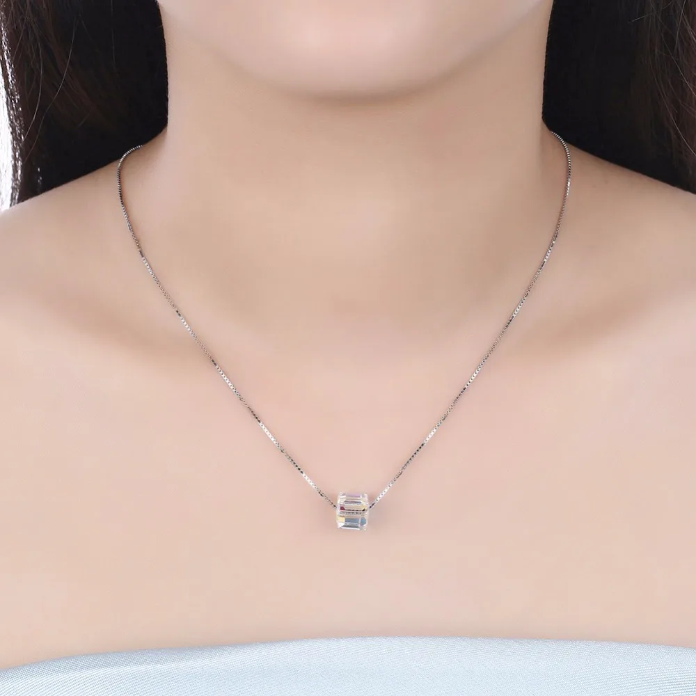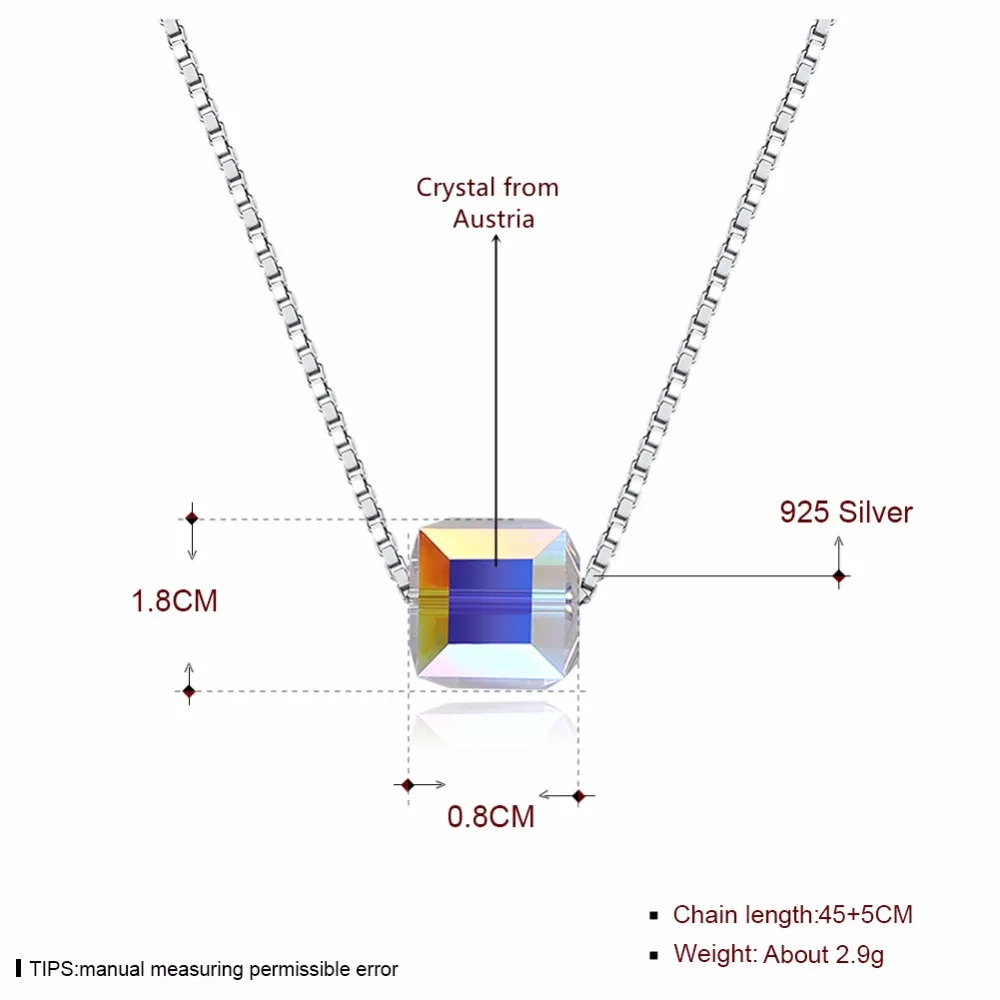 925 Sterling Silver Chain Necklace Crystal from Austria Square Shaped Pendant Necklace Valentine's D Gift CWN047