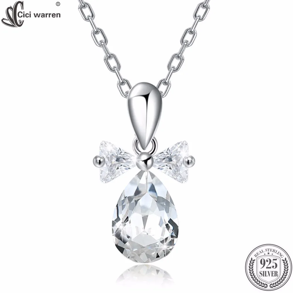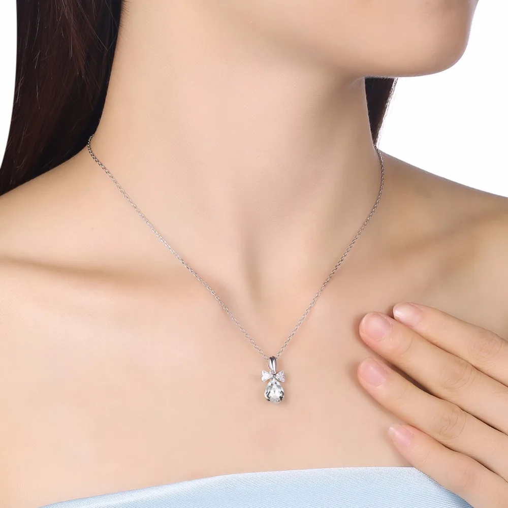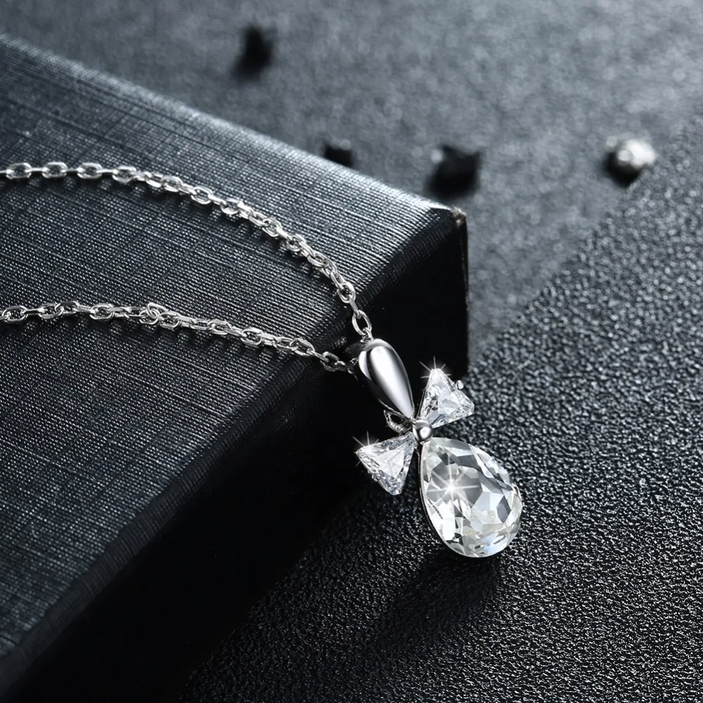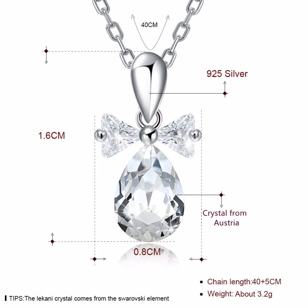 925 Sterling Silver Chain Necklace Crystal from Austria Water Drop Pendant Necklace Valentine's D Gift CWN064