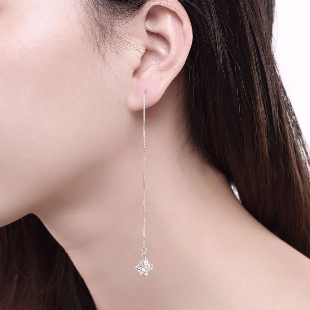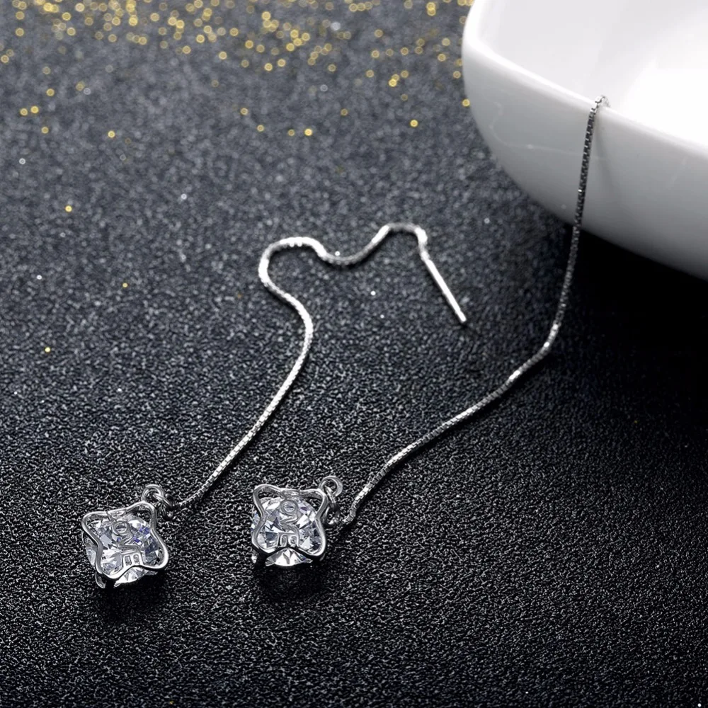 Fine Jewelry 100% 925 Sterling Silver Drop Earrings Flower Shape With AAA+ Zircon Earrings Gift For Women CWE031