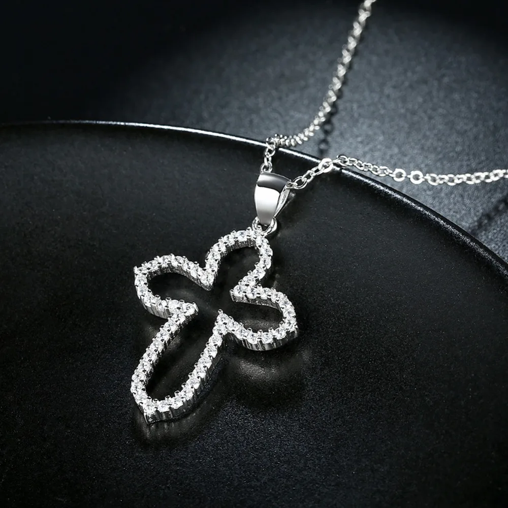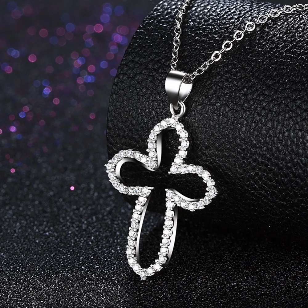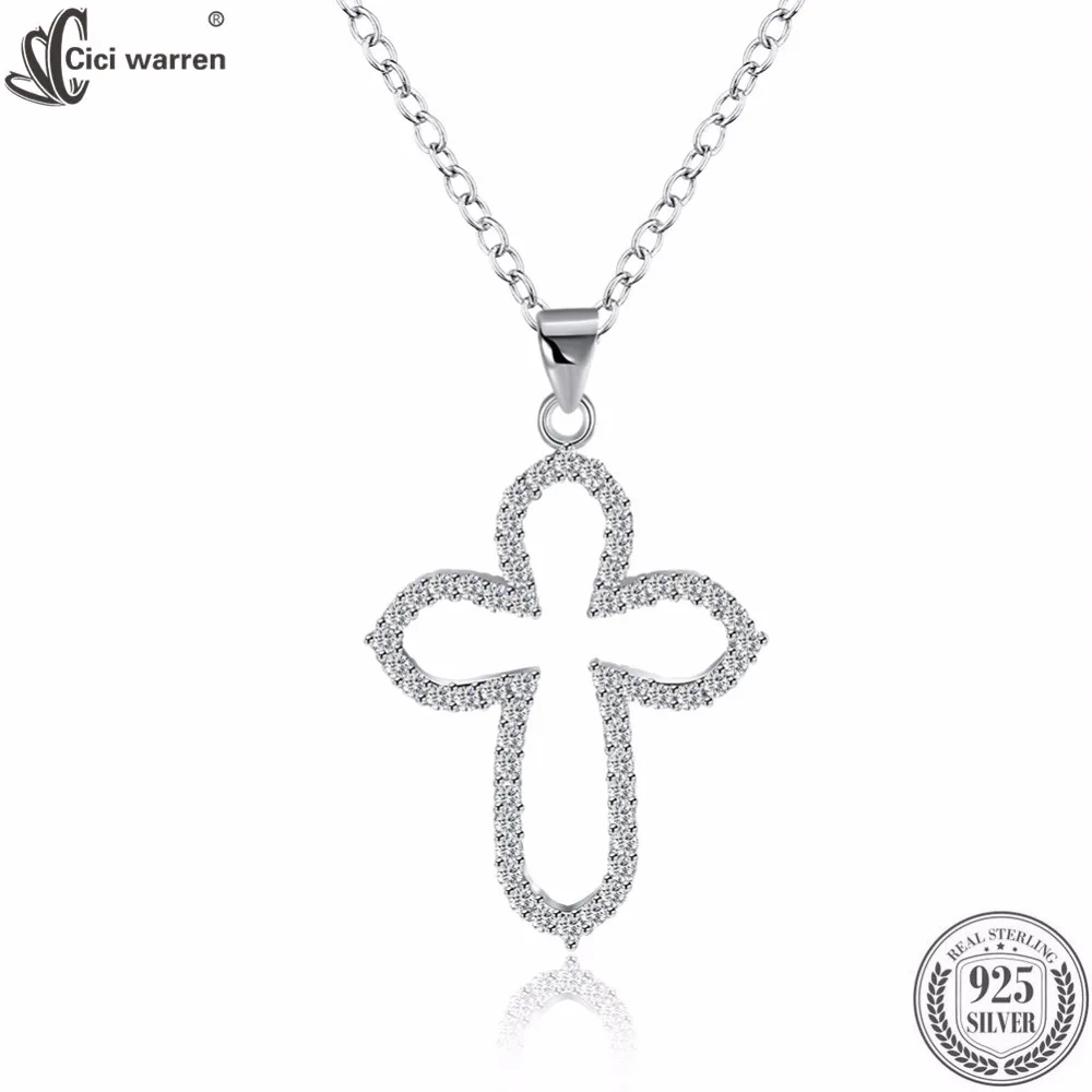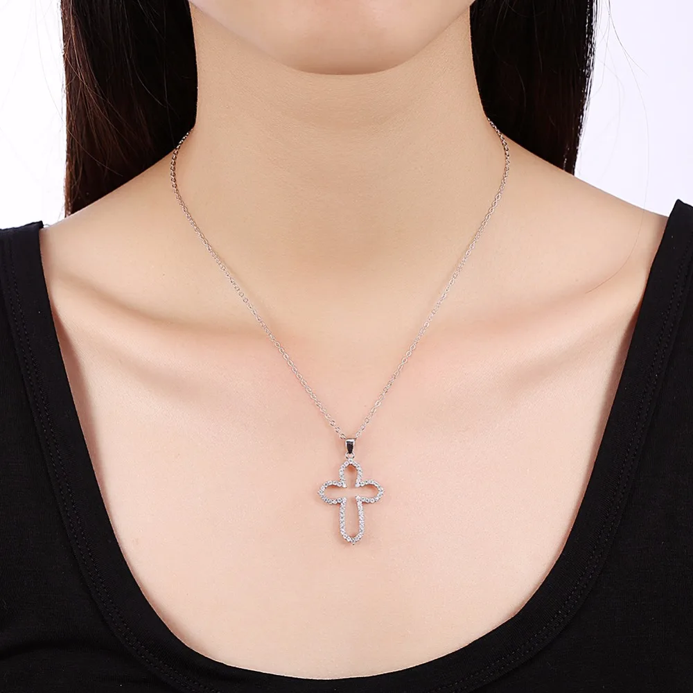 Fine Jewelry 925 Sterling Silver Cross Style Pendant Necklace Made With AAA+ Zircon Necklace Lady Jewelry CWN029