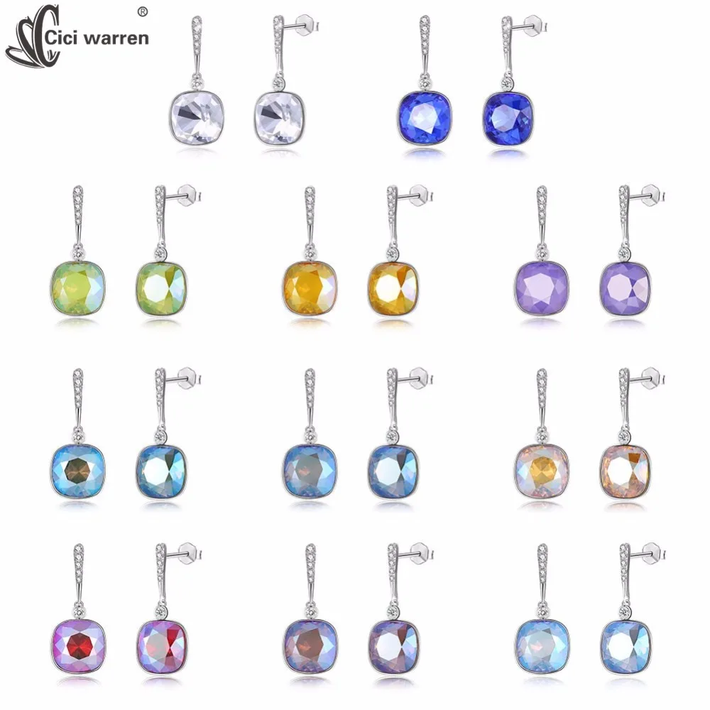 Fine Jewelry 925 Sterling Silver Stud Earrings 11 Colors Crystal From Austria Earrings Gifts For Women CWE060