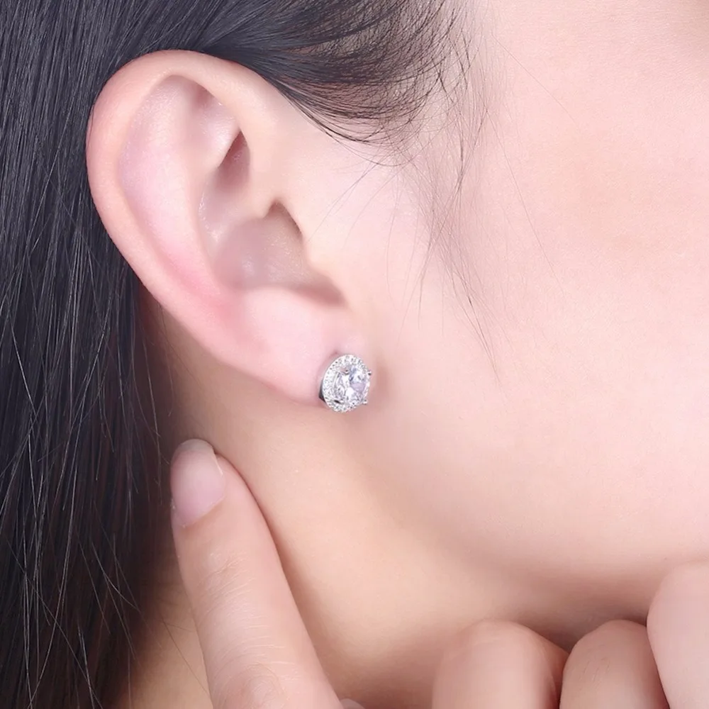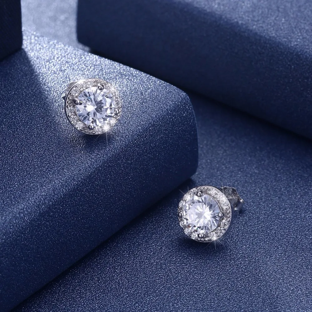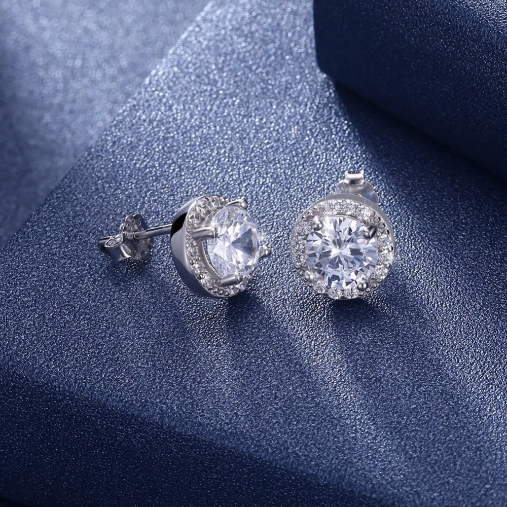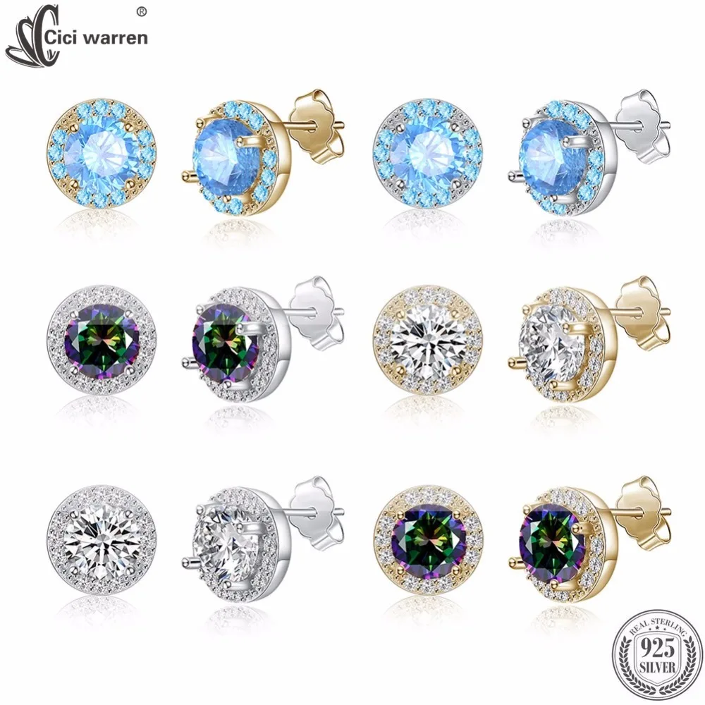 Fine Jewelry 925 Sterling Silver Stud Earrings Round style With Colors AAA+ Zircon Earrings Gifts For Women CWE024