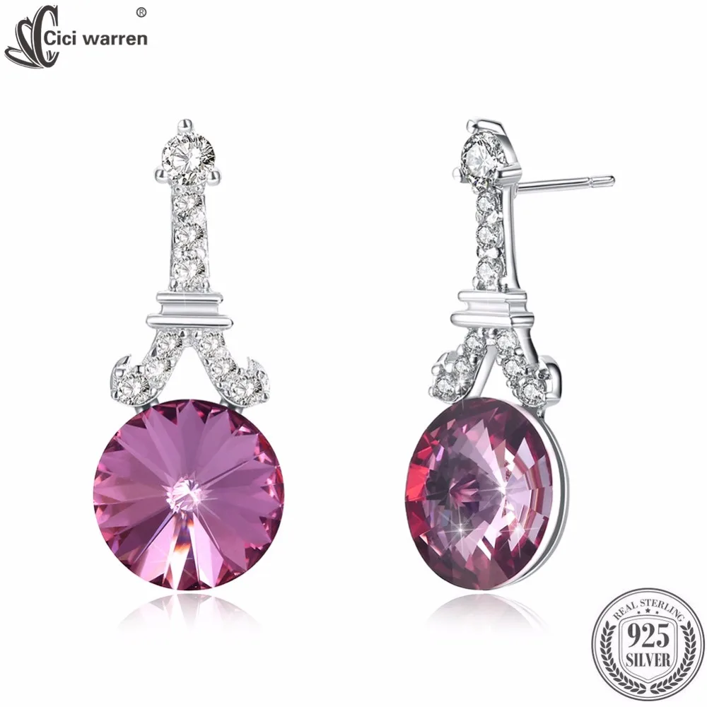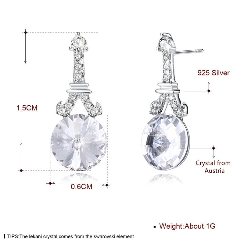 Fine Jewelry 925 Sterling Silver Stud Earrings Tower Round Crystal From Austria Earrings Gifts For Women CWE094